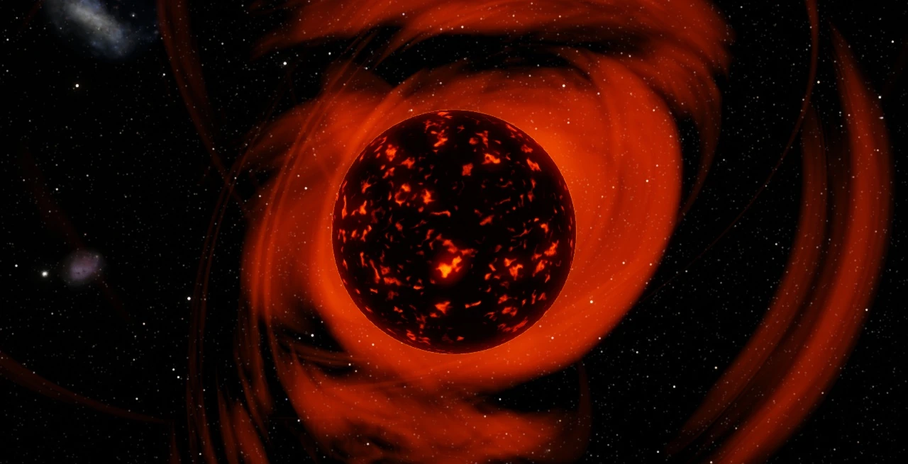 In 10,073 CE, a rogue probe that had fulfilled its mission drifted within 2 light years of 66 Alggiona. It first recognised the star as a Y-class brown dwarf, but that was immediately ruled out due to the sheer mass and the observed age of the star. As a result, the probe ventured closer and closer until a photo of the star could be taken. The result was something very enigmatic - a black sphere with vague red patches, resembling a hot terrestrial planet, but with a lot of material in its surroundings.