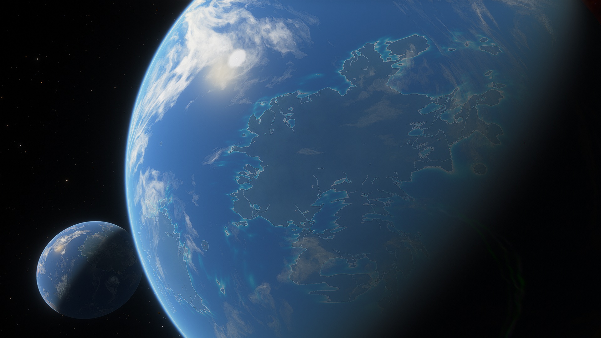 Ahamo has only a single continent, comprised of two landmasses, known as The Expanse. It is a flat almost featureless area of grasslands punctuated by creeks and streams. The rest of the planet's land is comprised of tropical archipelagoes, atolls, and isolated islands. Volcanic islands are common, being the only real mountains on the entire surface.