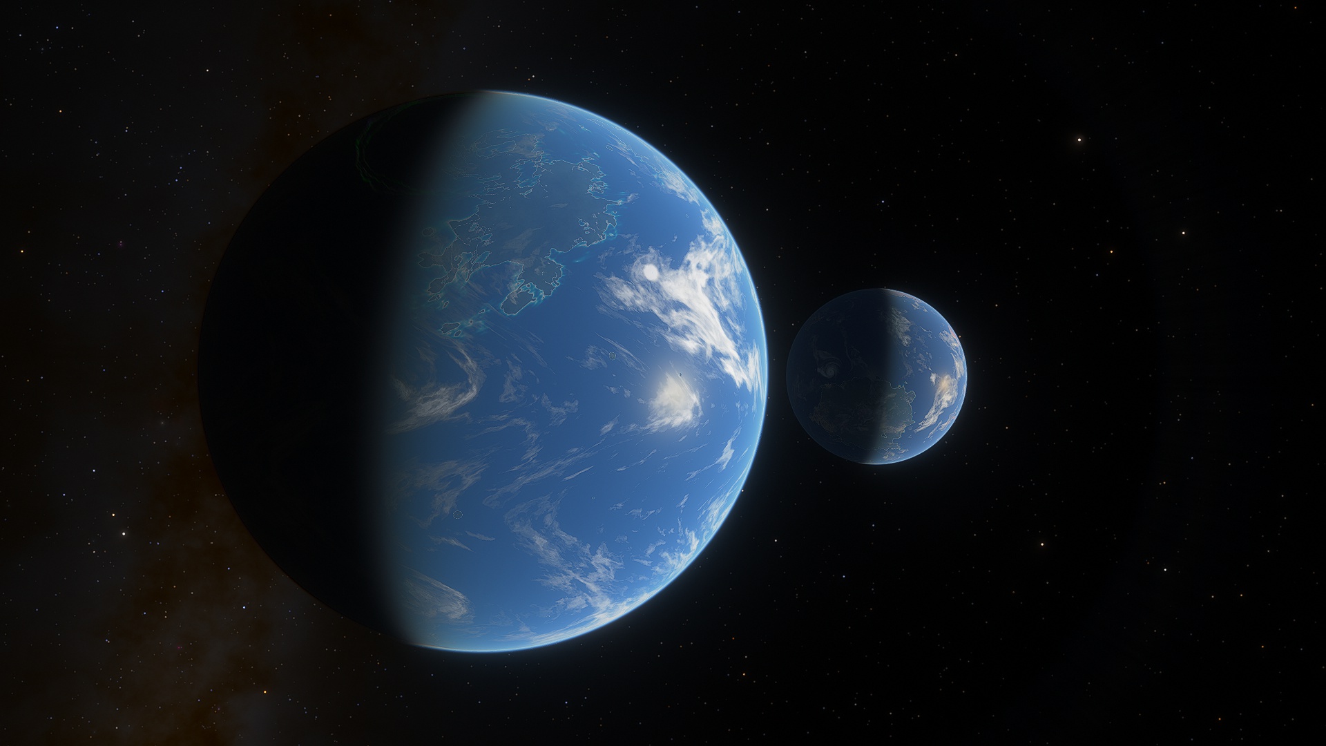 Ahamo is a the moon of the planet Na Grotta, orbiting the star Setts. It is the homeworld of the Symphoniphores and Lumbrican Terranneloids. Lush and tropical with clear warm seas, many sandy beaches, coral atolls and shallow seagrass meadows.