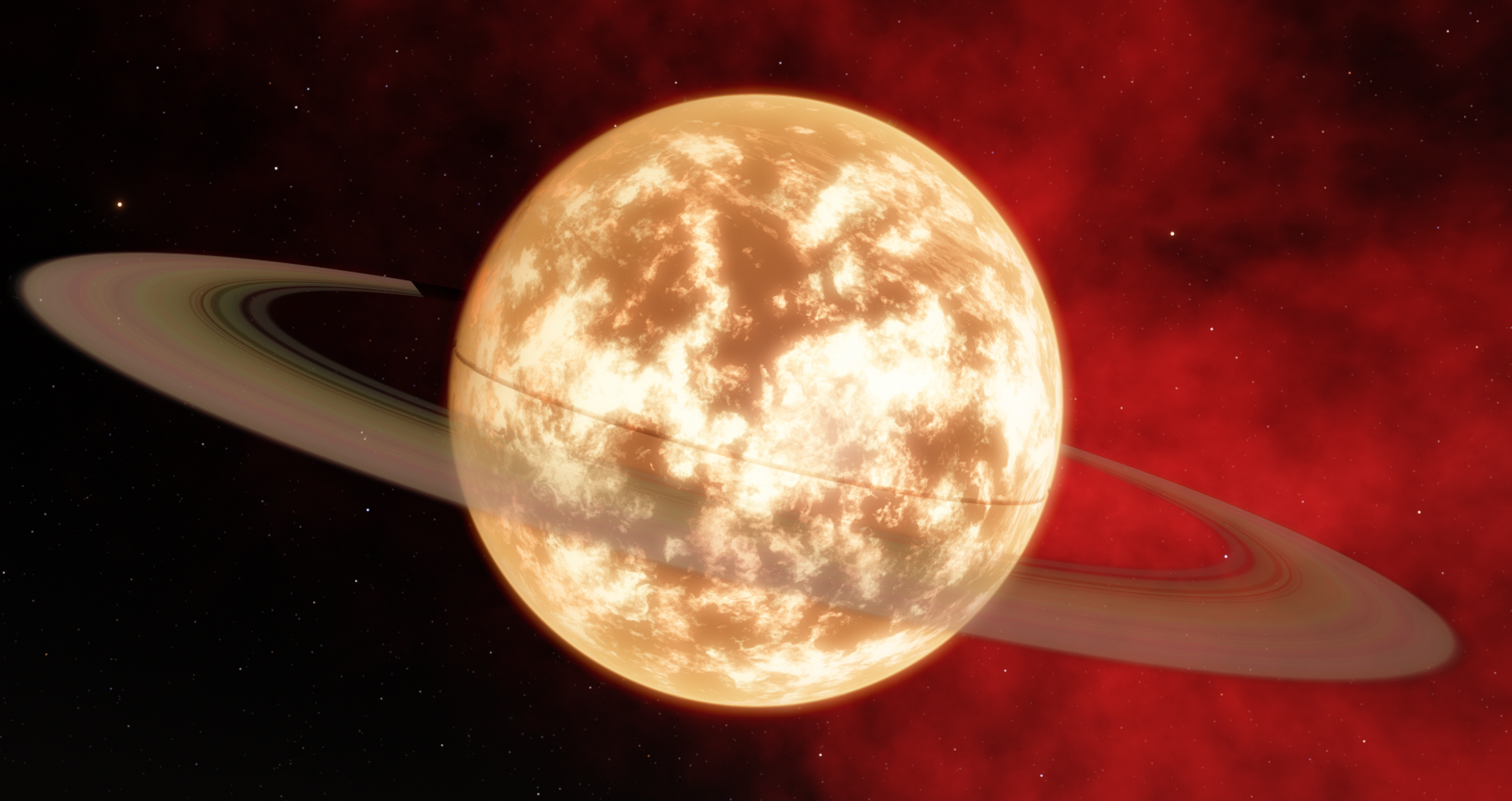 Aqua-Inferni's moon "Inferni", would orbit Aqua-Inferni for the majoirty of the planet's history. But with gravitational influence by planet Cupam, Aqua-Inferni's orbit would enter closer to Cupam for billions of years. With this gravitational tug-of war, the moon Inferni would be launched into Aqua-Inferni's rouche limit. Thus, it was torn apart and became a large ring system encircling the planet in 9,006 CE.