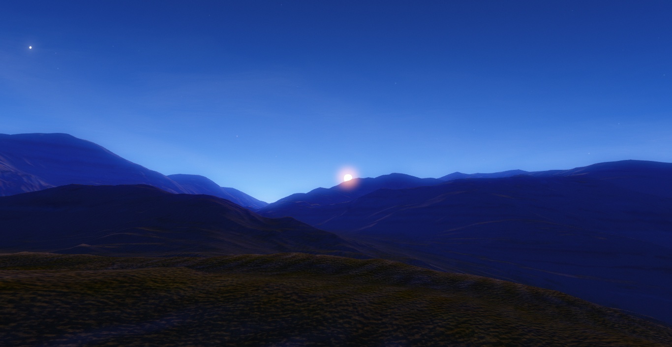Sunset over a mountain range on the surface.