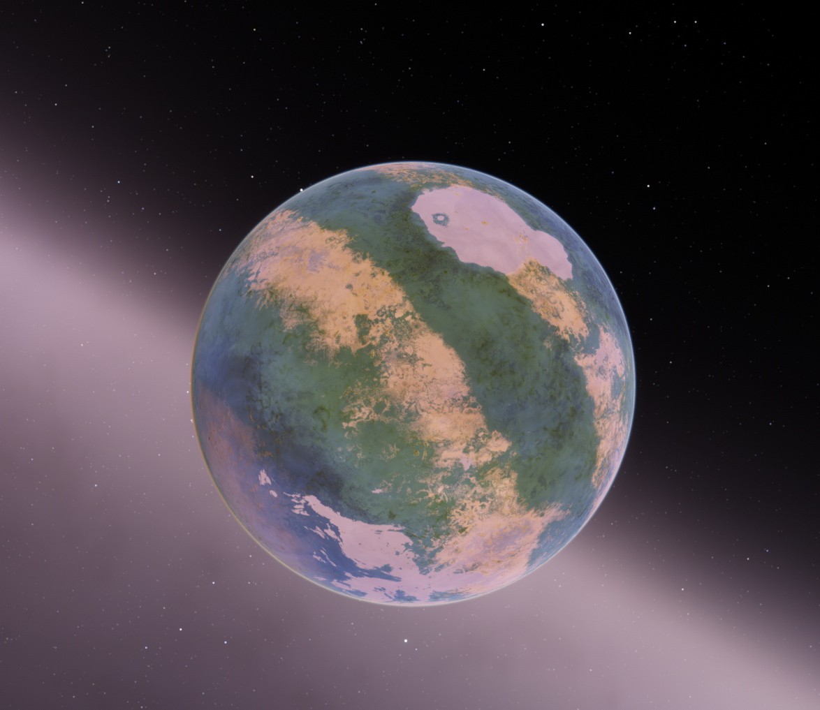 The planet formed a mere 1.1 billion years ago, with life having only existing for the latter 575 million years of the planet's history. The planet lacks significant oceans, instead, the humid air condenses during the night, giving water to most of the planet besides its two large desserts.
