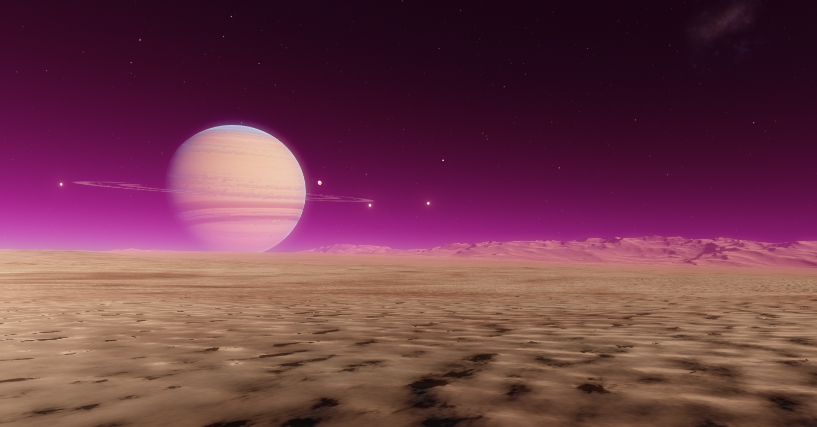 The landscape of Azrohec, with Xaridge VII visible on the horizon.
