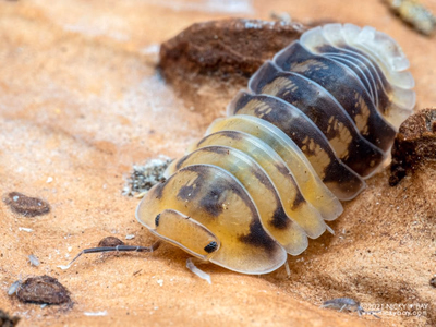 Used to be more alien looking, as it was an aliens pet, but due to some of the aliens from it's planet dying, (including it's owner) and coming to earth, it went on the ship craft and discovered life on earth, found isopods and took their form because they looked close to it's real form, and was discovered and adopted by Kyra (Boomslang)