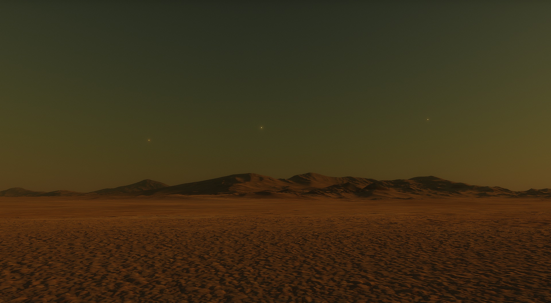 Three of the star system's planets line up in the sky in the terminator zone.
