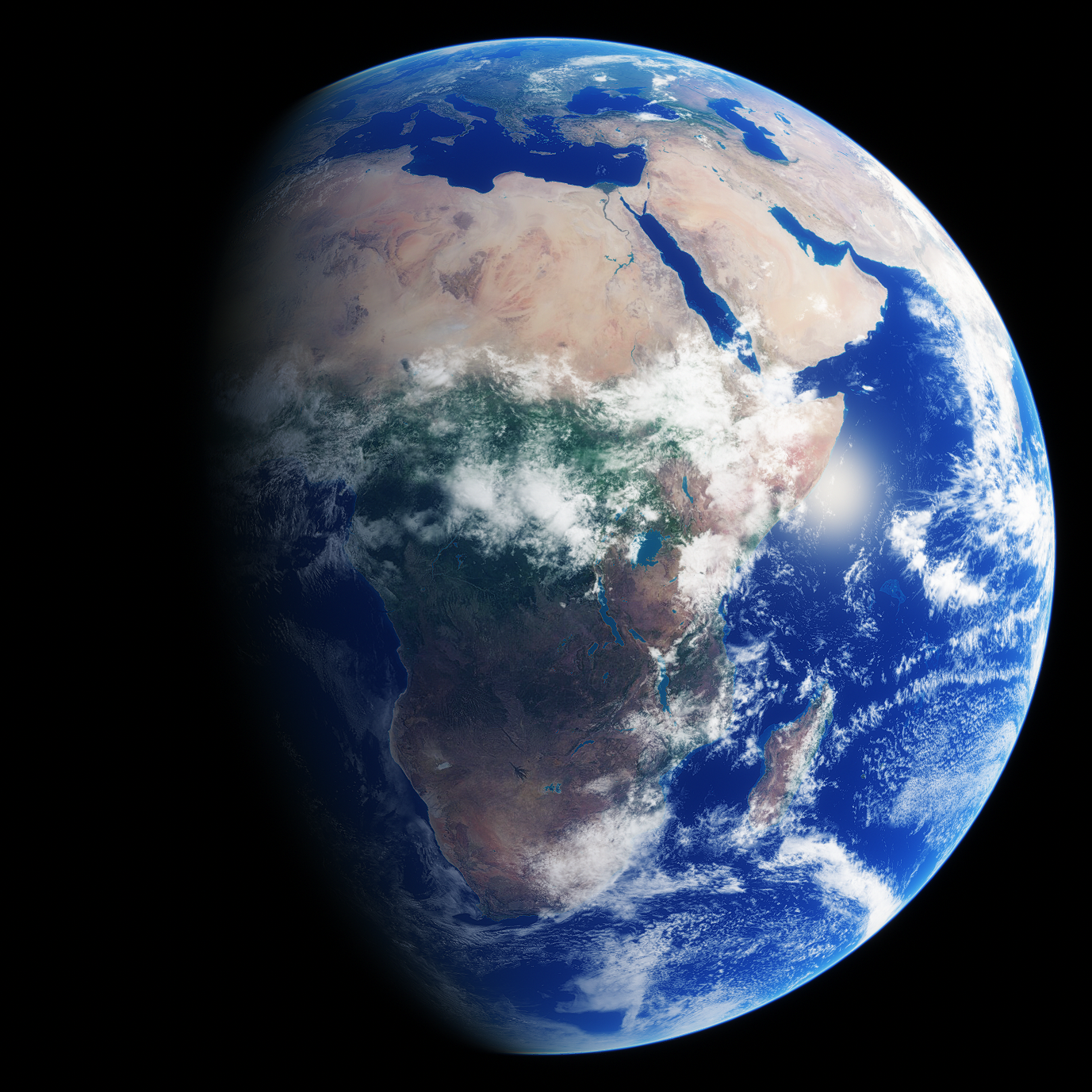 Planet Earth formed from the planetary accretion disk created from the formation of its parent star, Sol, in 4,540,000,000 BCE. As it formed, the planet was a hot hell world completely covered in massive fields of molten lava and magma. However in 4,500,000,000 BCE, an ancient Sol planet around six thousand kilometres in diameter nicknamed: "Theia" collided with Earth, shattering the former and causing massive amounts of debris to be put in orbit around Earth. This orbital debris would eventually coalesce and form two major moons named Luna and Diana respectively. This event also caused the planet to tilt on its axis about twenty degrees, causing the planet to experience four distinct seasons.