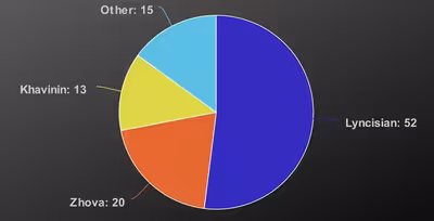 Over the following centuries, the Republic expanded in all directions, reaching its largest extent in the 1400s and becoming one of the major powers within the Lyncisian sphere. This position of power changed with the beginning of the Tychon-Seyvo war. The Tychon, who had spent most of their existence in isolation, quickly started overwhelming the Seyvo forces through their sheer number of servitor species, as well as the prowess of the Tychon species itself. The territories annexed by them were subsequently plundered, and as of the current year, the Tychon are in a position to invade the densely populated Seyvo heartlands, with the Seyvo taking ever more desperate measures to prevent this.