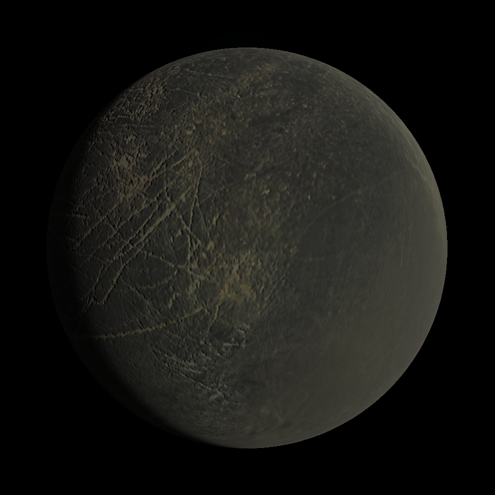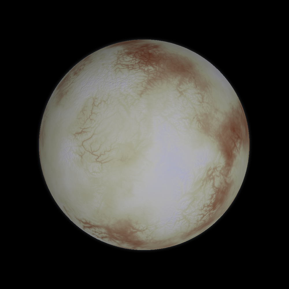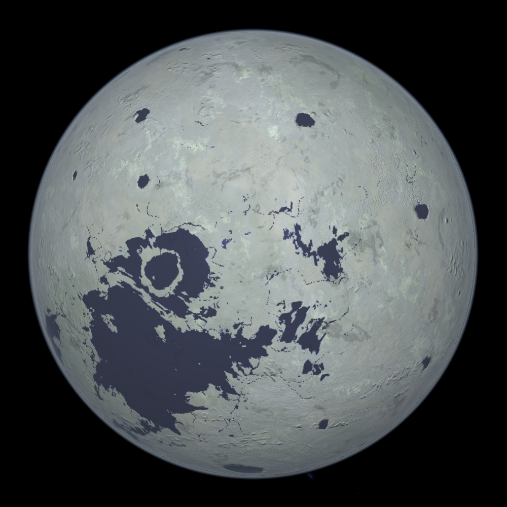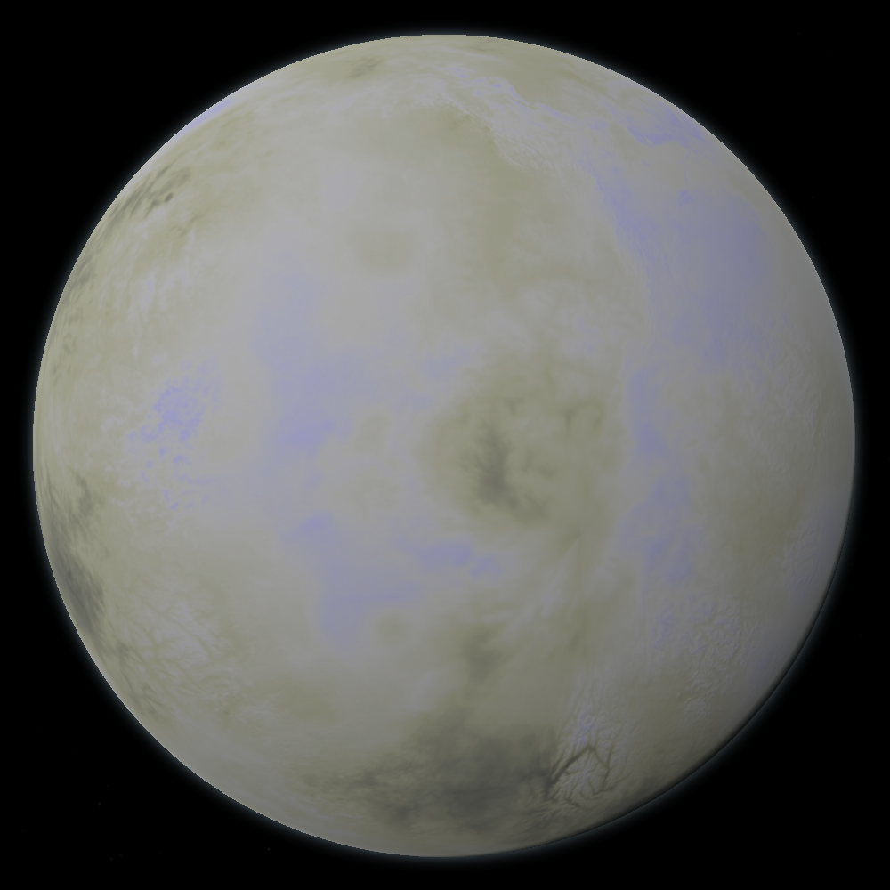 Konae is a small, icy, cratered world with the oldest surface in the system, untouched by air or geology since the moon's birth and supporting a small population of domed cities. Ensalar is a large, icy world, too far from Feres for tidal forces to nourish a full subglacial ocean. However, pockets of liquid water melt and refreeze on timescales of centuries, making Ensalar's surface quite dynamic. Marakat and its predecessors have spent millennia terraforming the surface to be habitable to the neighboring Poreltids, and today it is almost complete.