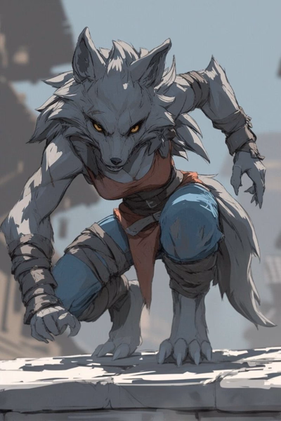 A Half-form is when a Fyrnex is halfway between a Home form and a True Form - They are a halfway point between their Home Kinde, and their True form. This is usually a humanoid form, but with fur, and the appearance of a wolf. In this form they have enhanced strength and speed, and remain capable of using Traits.