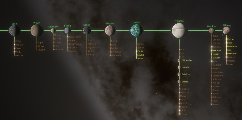 - Kevenem: Holds a Military center and based for defence. It has also important Energy production and mining facilities. The population of the planet is 23 Billion