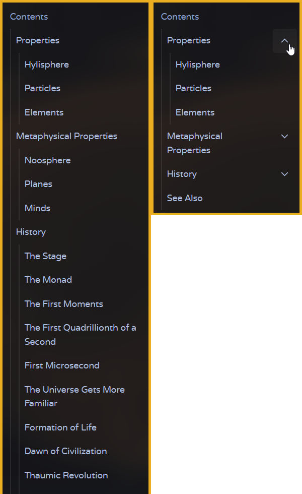 This disables the ability to collapse sections in the table of contents.
