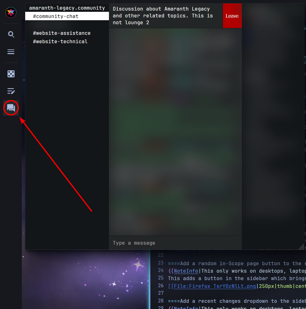 This adds a button in the sidebar which opens the Amaranth Legacy Chat, which allows you to communicate with other community members while you're writing.