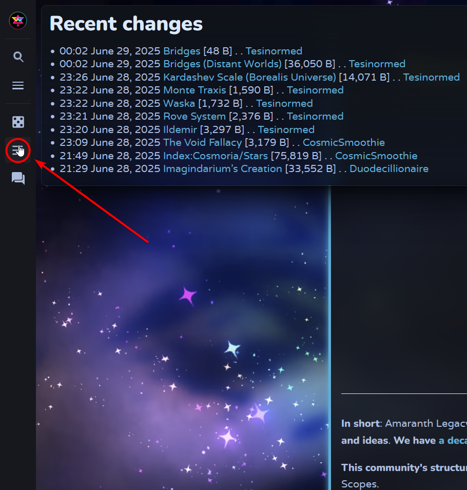 Add a recent changes dropdown to the sidebar