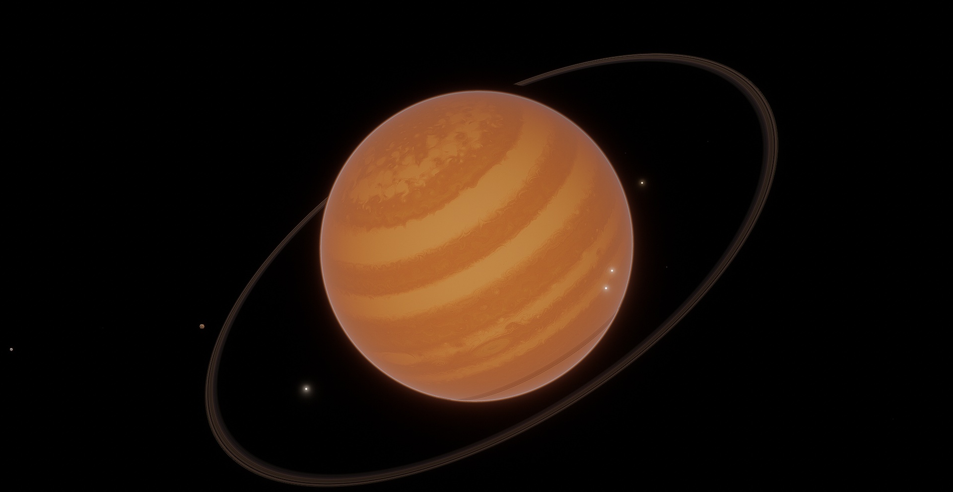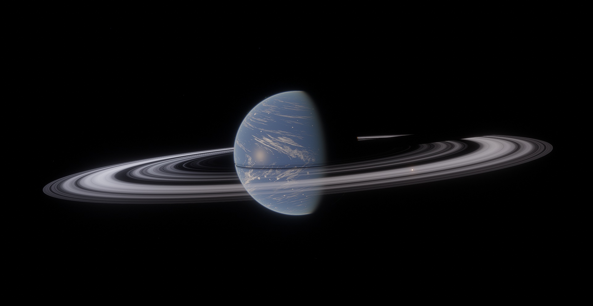 While impressive, the rings are mostly made of silicates finely pulverized into powder. Unlike the rings of the outer Helyar system, rich in volatiles like ice and ammonia, Vyllurian's rings are mostly for show. Prospectors move millions of icy rocks move from outer Helyar toward Vyllurian, fueling the water needs of its countless stations. Careful so as to not disrupt the view of the rings from below, the stations have the same white color and float in the same orbit.