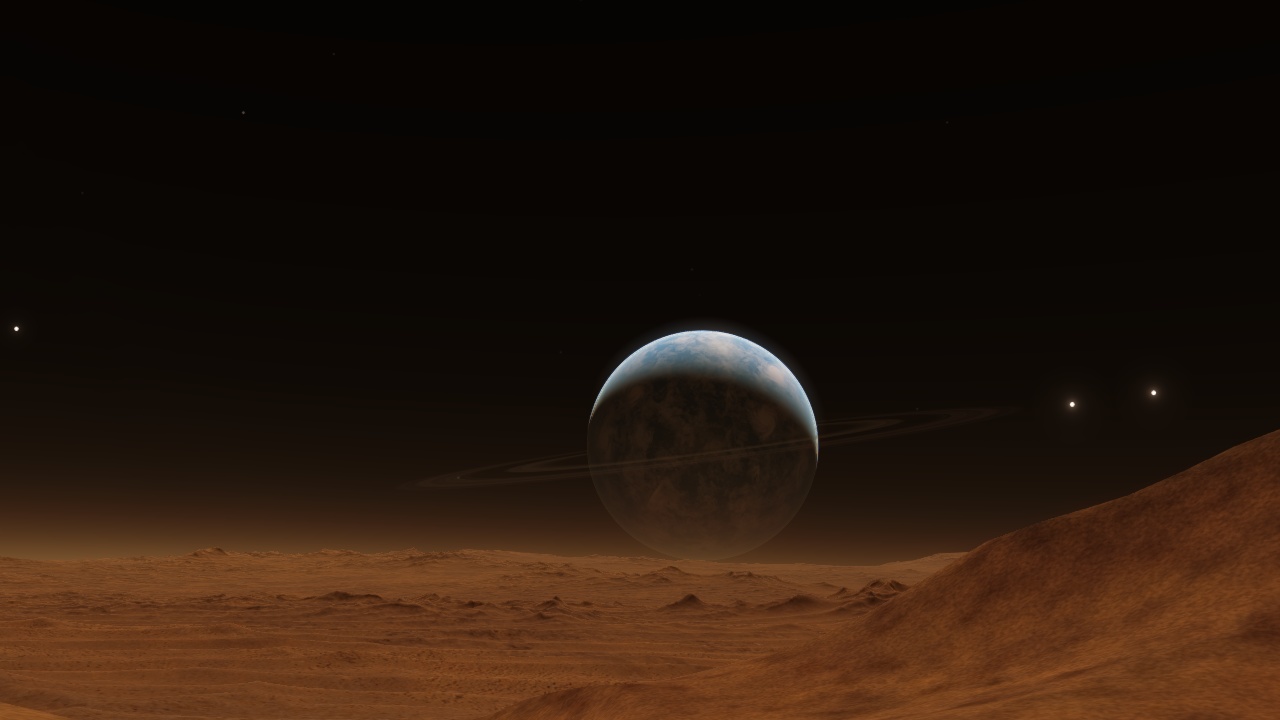 The seventh planet in the 70 Ophiuchi system, this temperate O-Class world has a diameter of 12508 km, giving it a gravitational index of 0.7 G. It has an orbit of 1.2 AU making its orbital period 1.5 years. It has a day length of 18 hours and 23 minutes. It has an atmospheric pressure of 1.6 and a mean temperature of -21.7 °C. It has three moons, one of which is a Marslike desert. The planet has a thin ring system, most likely from a collision.