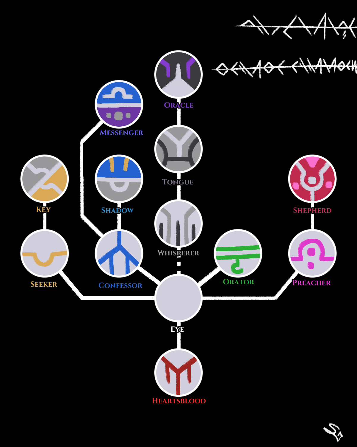 Oracles are rarely available, as between Dialogues they regularly scout through Eyes to see who among them has the strongest potential for a pure Psyche elevation, and from within those select few who knows the virtues of Ket Maragh in their heart well enough to truly advance. It is said that out of a thousand Eyes only six may be chosen for the Black Branch, at discretion of the Oracles alone.