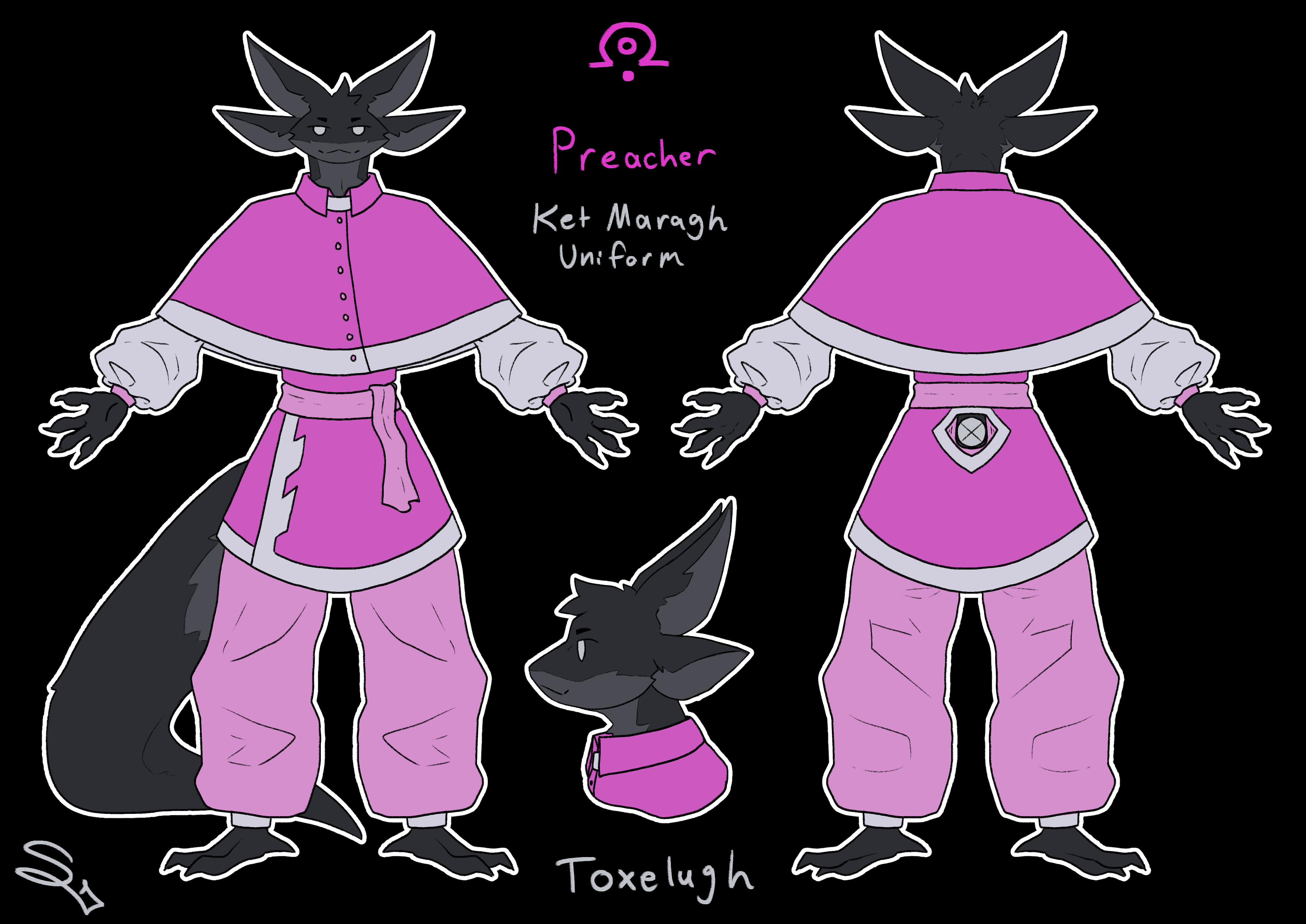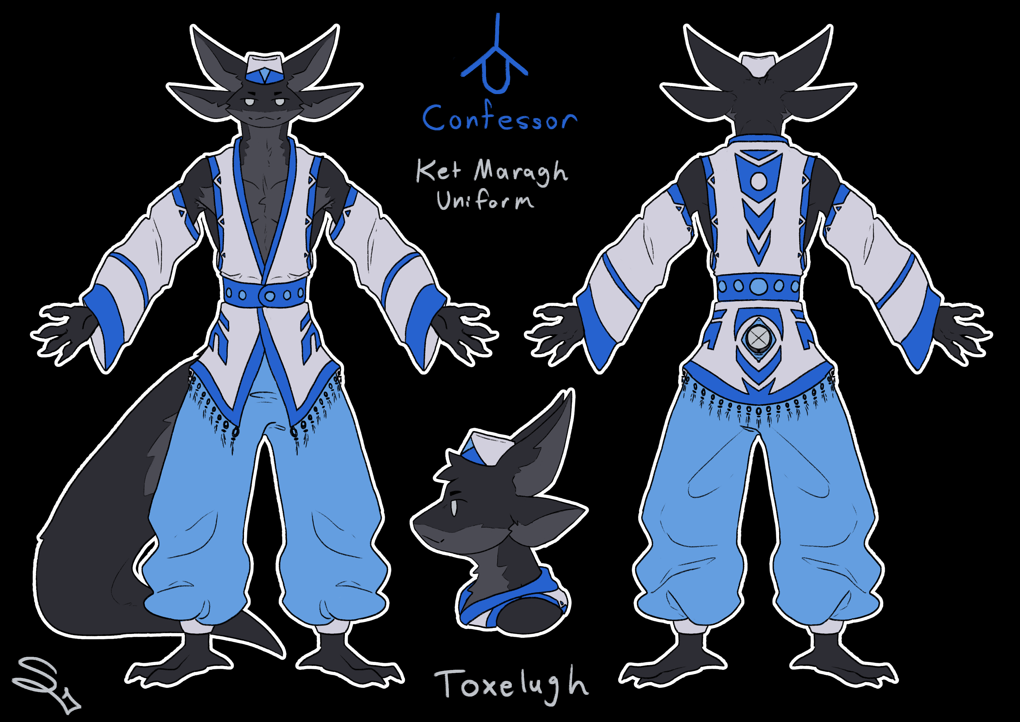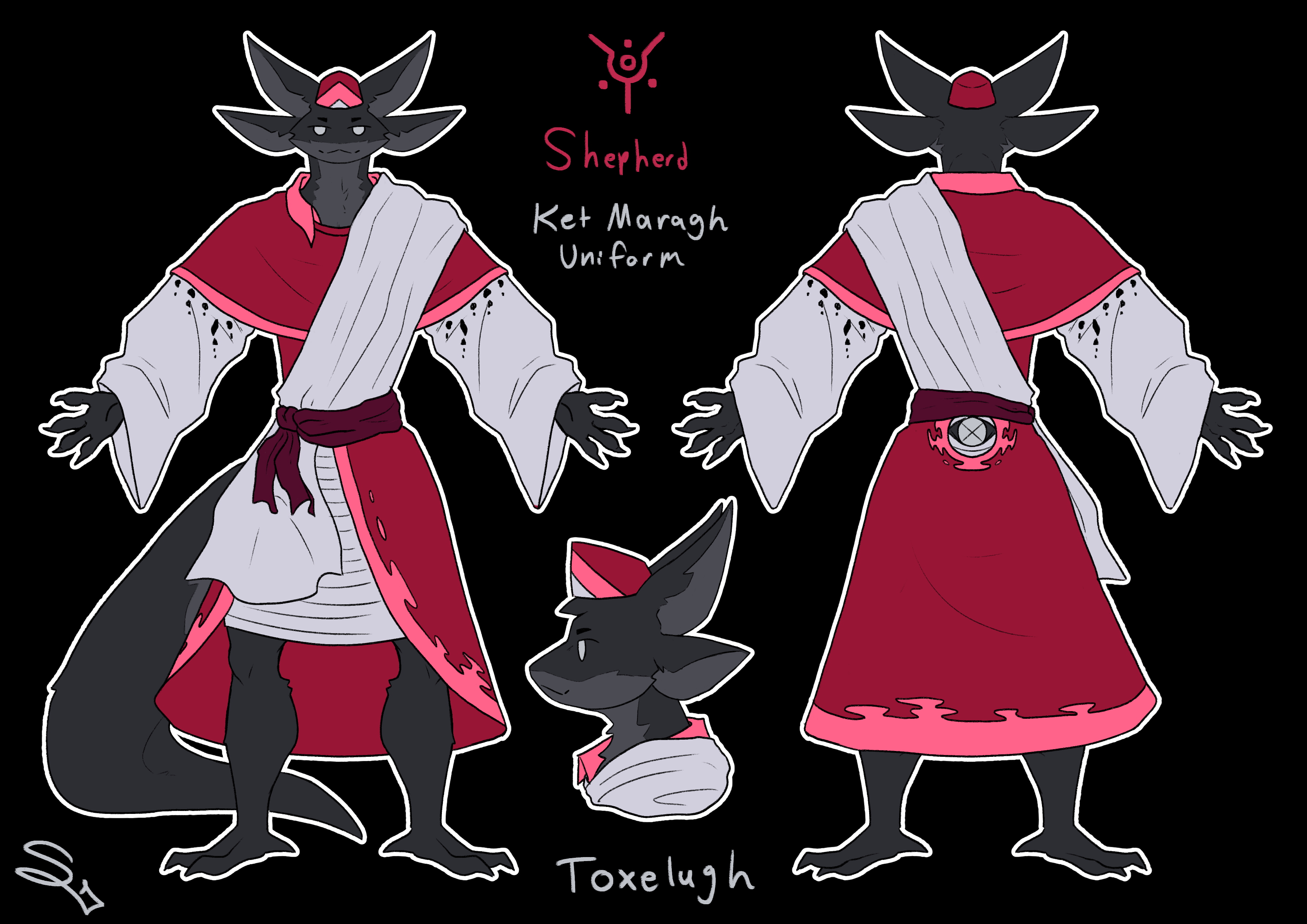 The clergy of Ket Maragh is made up entirely of unattuned toxelugh, as one of the foundational principles of the religion is that Lugha—the Great Beast, Her name forbidden to be used to refer to Her—grants only one use to each individual. The Attuned toxelugh are the Beast's arms and claws—Ae Lugh literally mean's Claws of Lugh (altered form to not disrespect Her name). The unattuned have a wider variety of roles, able to function as the lifeblood that keeps the archipelago thriving or the other organs. Those who become Ketem priests are said to be the Beast's eyes, ears, nose and tongue, the sensory organs and that which allows Her to speak. Their psychic connections allow them, through ritual, to allegedly communicate with the deceased Beast Herself.