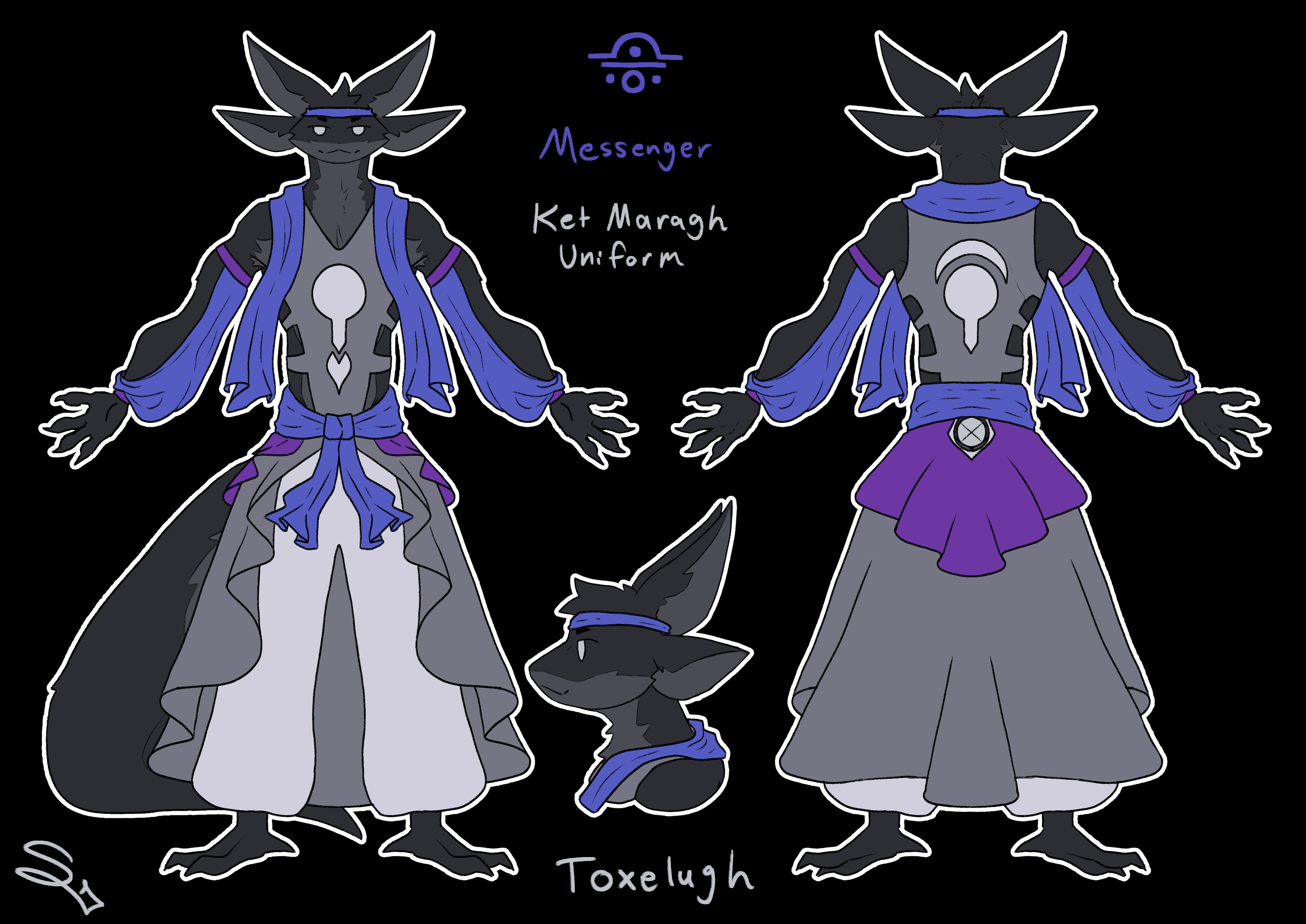 Sometimes called the Blue Branch, the Branch of Message is dedicated to the flow of information, both mundane and esoteric. They are the scribes, the sponsors of the mail system, the history-writers and the archivists. It is said that the written language of the Toxelugh was invented by the Blue Branch of Ket Maragh, wrenched from a divine inspiration taken from Lugha Herself.