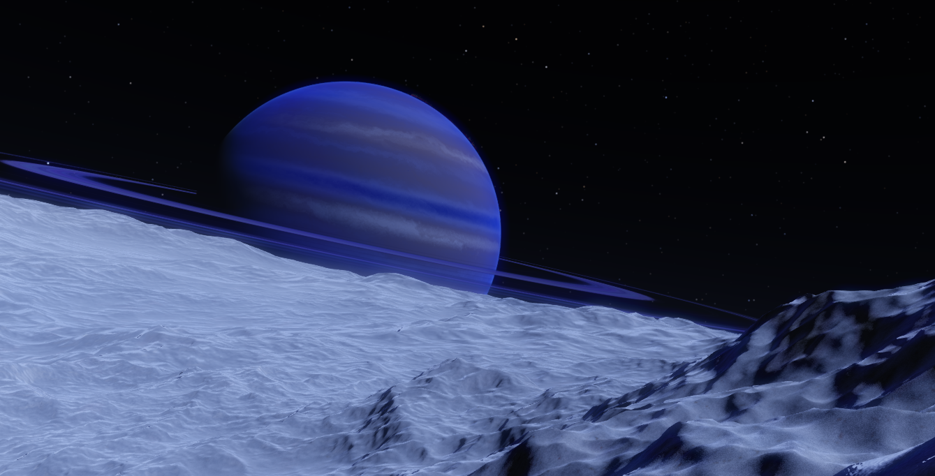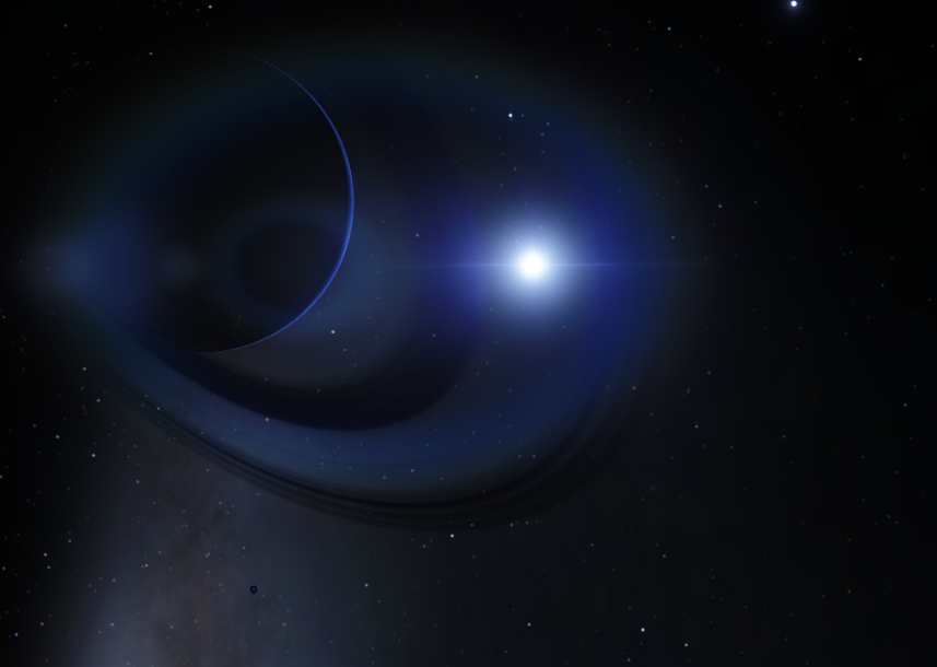 Ki'Larthik is a frozen ice giant in the Large Magellanic Cloud, orbiting a DB4-class White Dwarf. It is nearly 3.8 times the size of Earth, with 29 times the mass. It orbits the Dwarf in 197.2 days, has a day length of 11 hours, 28 minutes, an axial tilt of 84 degrees, and a temperature of -225.4 Centigrade. It has 3 major moons, and 17 captured asteroids, and a semimajor axis of 0.694 AU.
