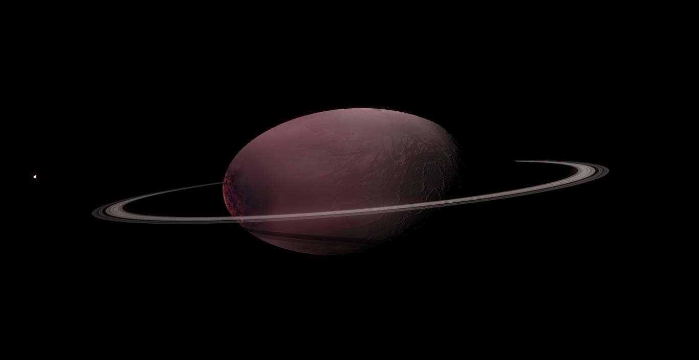 Haumea, the most oblated object found, is another Kuiper Belt which was officially reached in 2076. Like the other Kuiper Belt objects, exploration followed the arrival of numerous space probes. Haumea was difficult to colonise due to jts strange shape so landings were mainly conducted at the polar regions. Only short term settlements were built for the expedition as it was considered undesirable for any long-term habitation.