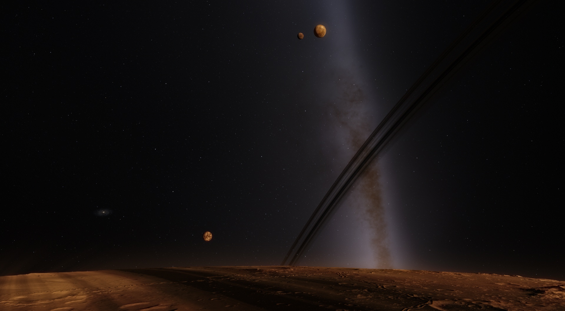 Lehra is orbited by eight moons, three large moons and five captured asteroids in elliptical and inclined orbits. These asteroids are believed to be ancient comets that have lost up to 97% of their ice during the last eleven billion years. Only 3% of their ice, from the star system's formation, still exist on their surface.