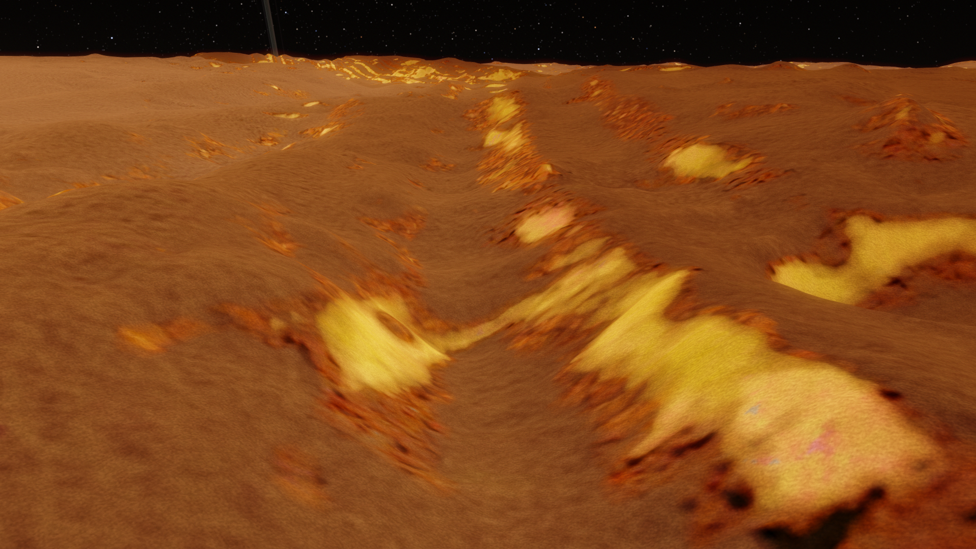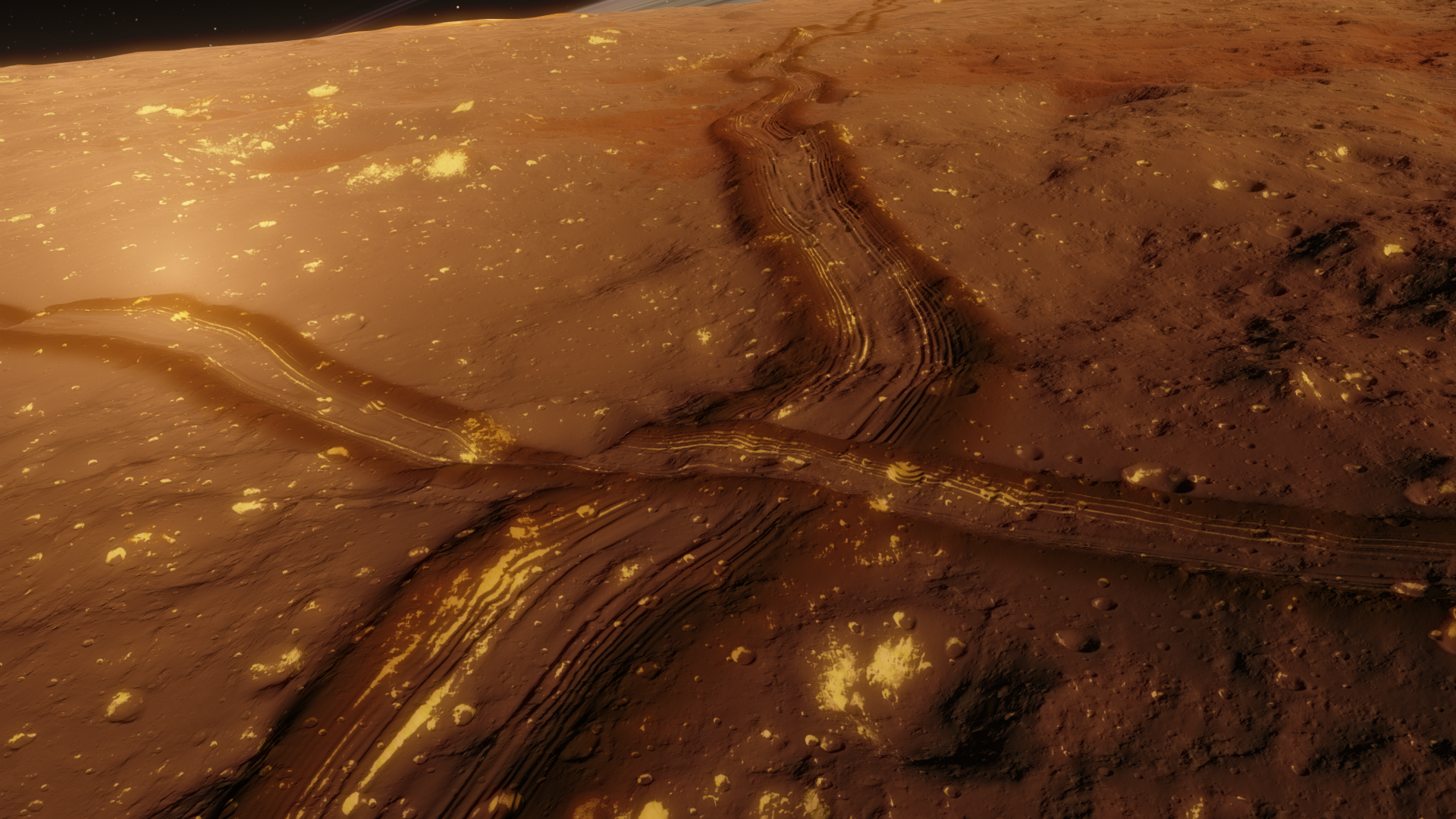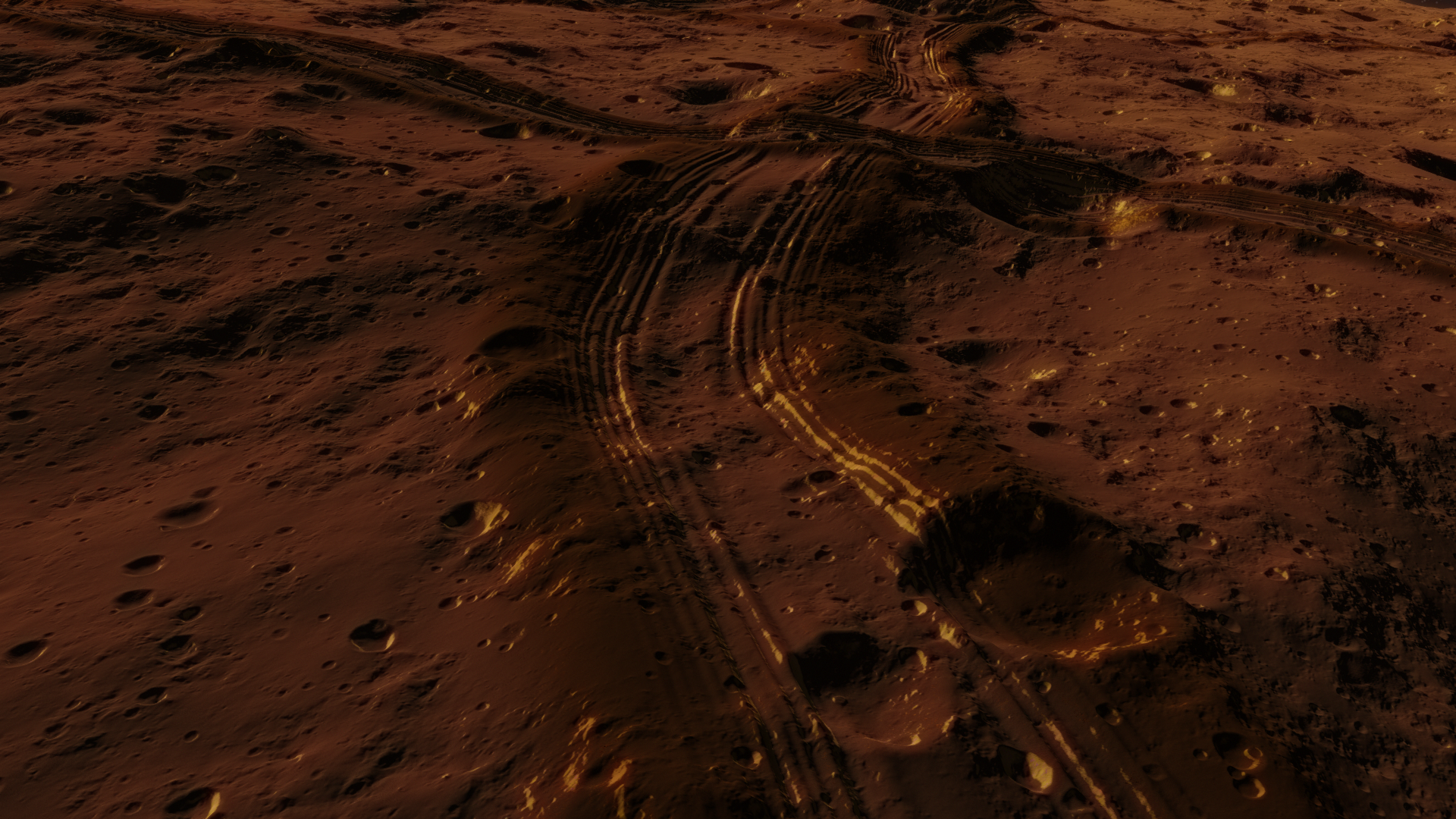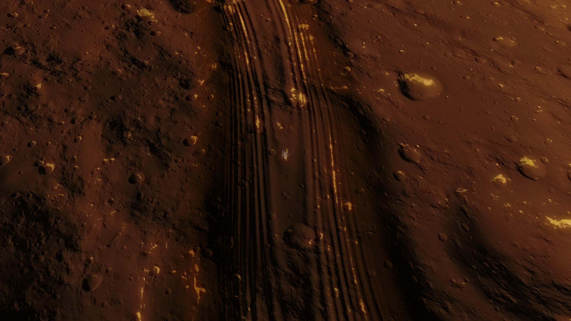 Lopawaxeraustenuliusuwer is the 8th planet of the Xahor system. Its a very mysterious planet because of its huge white spots and "tracks". These tracks seem to be about 5 kilometers wide and they are everywhere on the planet and they are in a zig-zag. These tracks as reported by the surface base Lopaw Kale seem to have alot of synthetic rubber and some sort of a synthetic oil in them, the oil is also visible because you can see oil stains on the surface. They also have increased levels of Aluminium and Iron, this discovery leads scientists to belive that there were some sorts of huge rovers on this planet, maybe the rovers were used for mining? Whatever they were used for, it shows that there was an intelligent civilization here with much better tech than Yerts or Weuns. There is currently a space station orbiting Lopawaxer and a surface base.