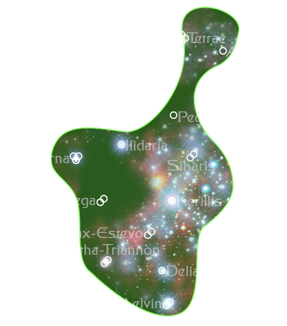 The Federation of Marakat States is a large, highly decentralized state found throughout the Parallelogram Cluster within the Vernarca Nebula. The capital system of Deferna is near the edge of the nebula in the midst of the Ilidarian Clouds and the border of Burumal. The rest of Marakat territory is split between the endlessly shifting territories of various pirate factions, militant religious groups, and other rebels, with the central government at Vistari exerting very little control beyond its planetary system.