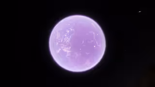 Courante is, on average, the most distant of Nocturne's satellites. Its sister worlds are hardly visible in the perpetual night sky. Courante's north pole points toward Nocturne's four stellar companions. These four stars dance in the northern hemisphere while the southern hemisphere points towards Aylathiya's orange clouds. Due to its cool temperatures, Courante is home to heat-sensitive industry, in particular computing. The planet's millennia-spanning freeze-thaw cycles has encased ancient settlements in neon ice. Courante has the highest concentration of noble gases in Cosmoria, including a light but dense atmosphere of nearly-liquefied helium. It is difficult to move about on Courante because of this.