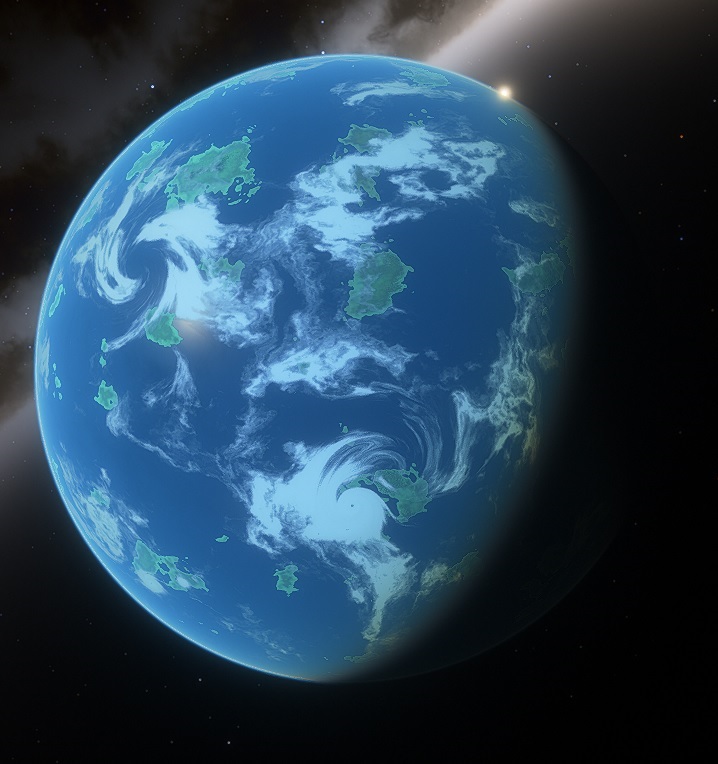 Okaia is the fifth world of the Eferal System, a binary one, located in the inner Okaia Quadrant of the Lewis Galaxy (which is named after this planet) and thus in Herschel Space. This world is known for being a hot oceanic world with a north ice-pole and several scattered islands all over the planet. However, the oceans of Okaia are rather shallow and not very deep. This allows Okaia to have one of the most biodiverse ecosystems in the Galaxy. The planet is one of the seats of House Zykov, and it's importance has grown exponentially ever since.
