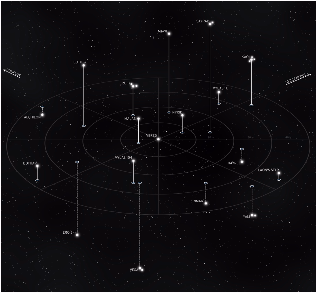 The Old Bubble is a region of eighteen populated systems centered around Veres in the Vyro sector of Avaria. Following the invention of the Seraph drive, space travel experienced a boom unlike any other at the time. It was then that the Old Bubble's systems became of high interest to Veres' nations, harboring either terraforming candidates, natural garden worlds, or unique research opportunities.