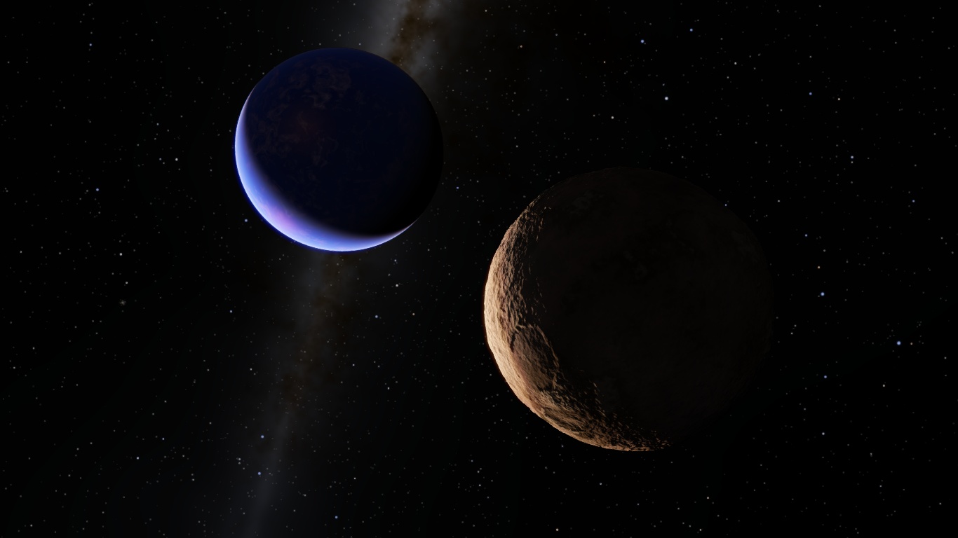 Oonik’uuwo and another moon with the Milky Way Galaxy in the background