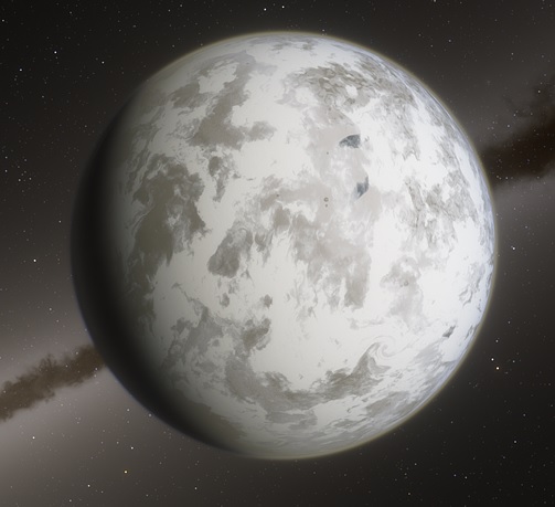 The Fauna of the Planet is very agressive and is based on survival. All the animals found here have white fur or camouflage to keep them warm. During the winters, some go into hibernation. Most fauna is concentrated around the equator and the small oceans, and lakes. The animals feed mostly on water based sources, such as fish, and this animals in turn are the main food of larger predators, so any place around with water is terribly dangerous, due to the high concentration of fauna around. Inland, the Selemelians can be found. Large herbivores, who feast on fungus and moss who grow on rocky areas or under the snow, blossoming and reproducing very quickly in Summer, during the very few days with sunshine. Its spores float with the windy snow storms and fly far, settling on the rich mineral soil of the planet and growing hidden under the snow.
