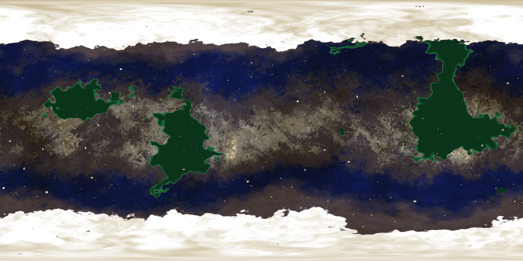 The surface of Purpura is primarily purple and magenta rock, with a few oceans and inland seas. There are river systems and lakes that flow through the planets, which are a sort of icy slush flow. There are also lots of volcanoes that dot the surface, some active but most are dormat. The volcanoes could have been a source of life, as they are a hotspot and spew out many helpful minerals. There are ice caps near the polar regions.