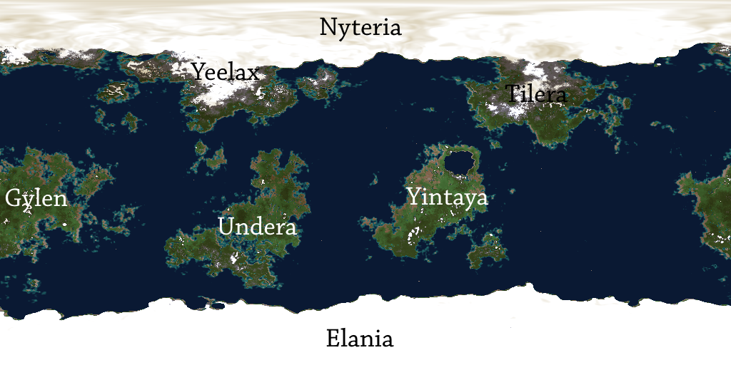 Rodinia is a moon of the blue gas giant Ferin. Orbiting the gas giant are another 28 moons, captured billions of years ago. Rodinia's orbit is not inclined with almost zero eccentricity which means an eclipse occurs that engulfs the entire moon.