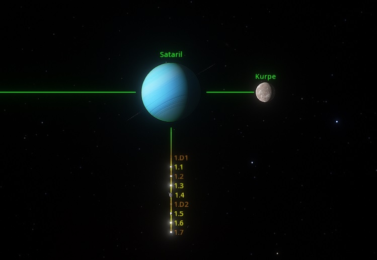 - Sataril: A gas world, with several moons. It harbours some mining activities as well as holding a large Military base. The whole population of the base is 2 billion people while the mines around it account for 1 billion more.