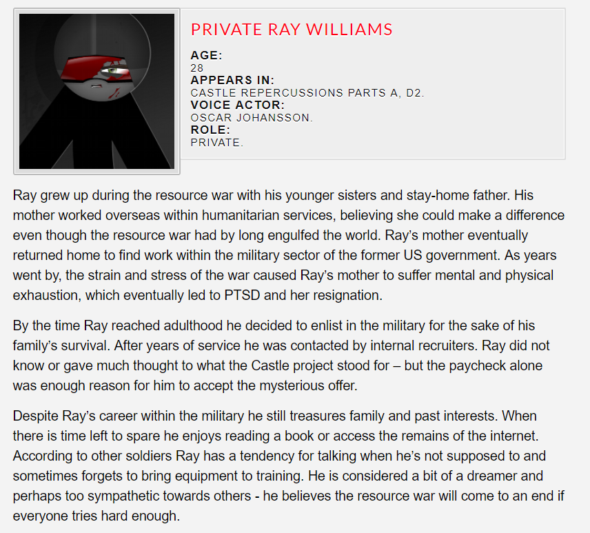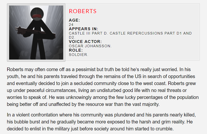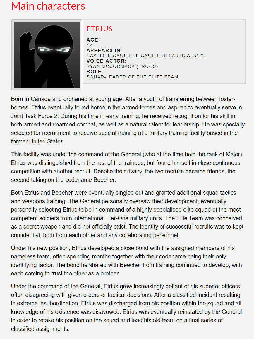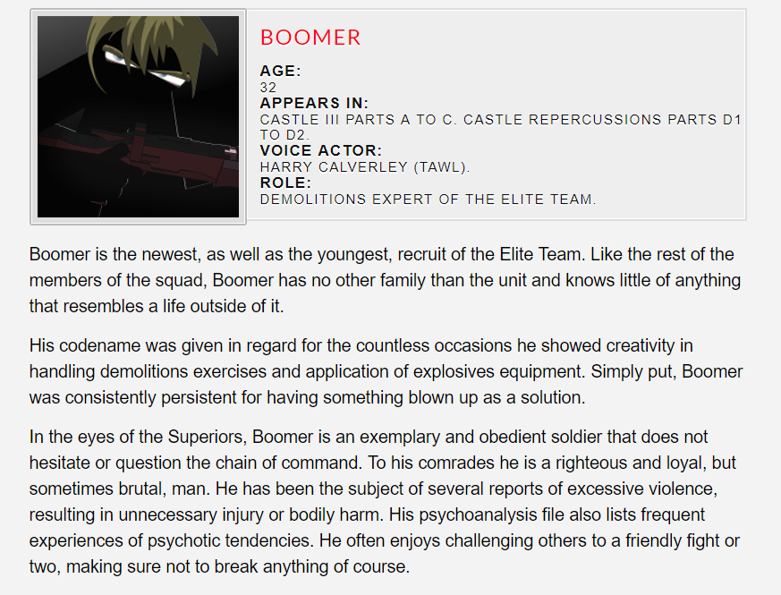 Written by Oscar Johansson and aciDC, these Character Bios were on the original DeletionQuality forums. As such, they are considered to be canon to Castle Admonishment unless otherwise stated.