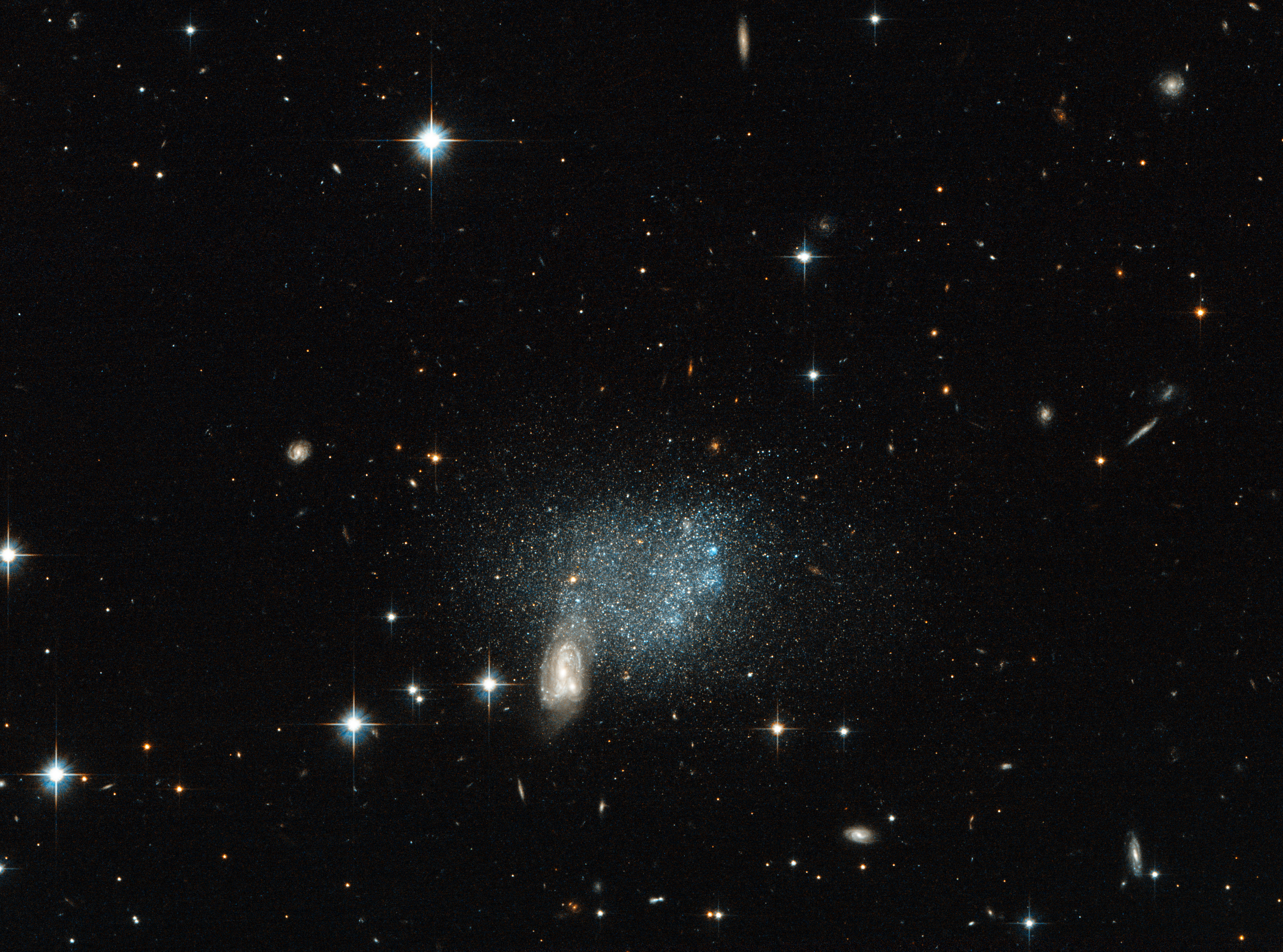 The expansive gap separating the galactic core and ring may contain some star clusters too faint to be detected, alongside the confirmed presence of a smattering of the halo population of globulars. As ring galaxies are extremely rare, the nearest other one is over 300 million light-years distant and remains unnamed by all the civilizations who live here. The luminous galactic ring lies at the inner edge of a much more expansive ring of neutral hydrogen gas.