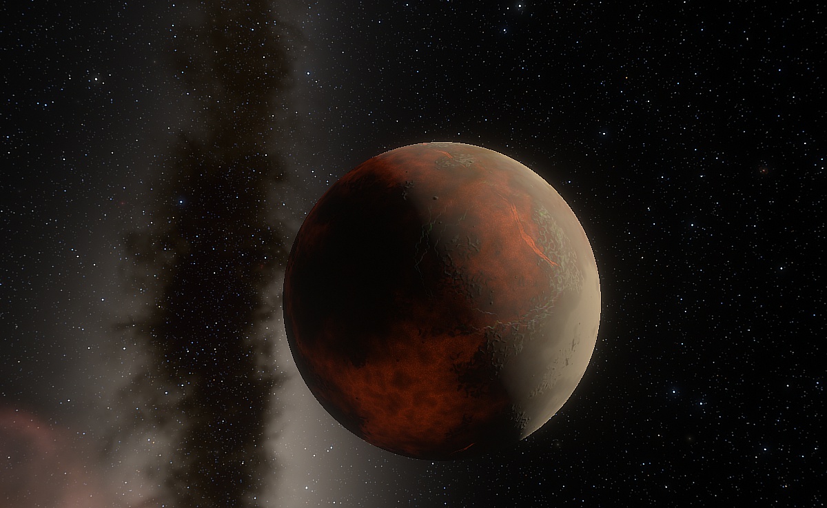 The planet is covered in obsidian, basalt, and other igneous rocks, with the occasional lava flow or volcano. A few large lava seas cover some areas of the planet, a result of the tidal stress and close proximity to its star. Although it is far outside of its Roche limit for now, and the orange dwarf Roin is still in its juvenile stage, as the star expands later on Sirob will very likely be ripped to pieces.