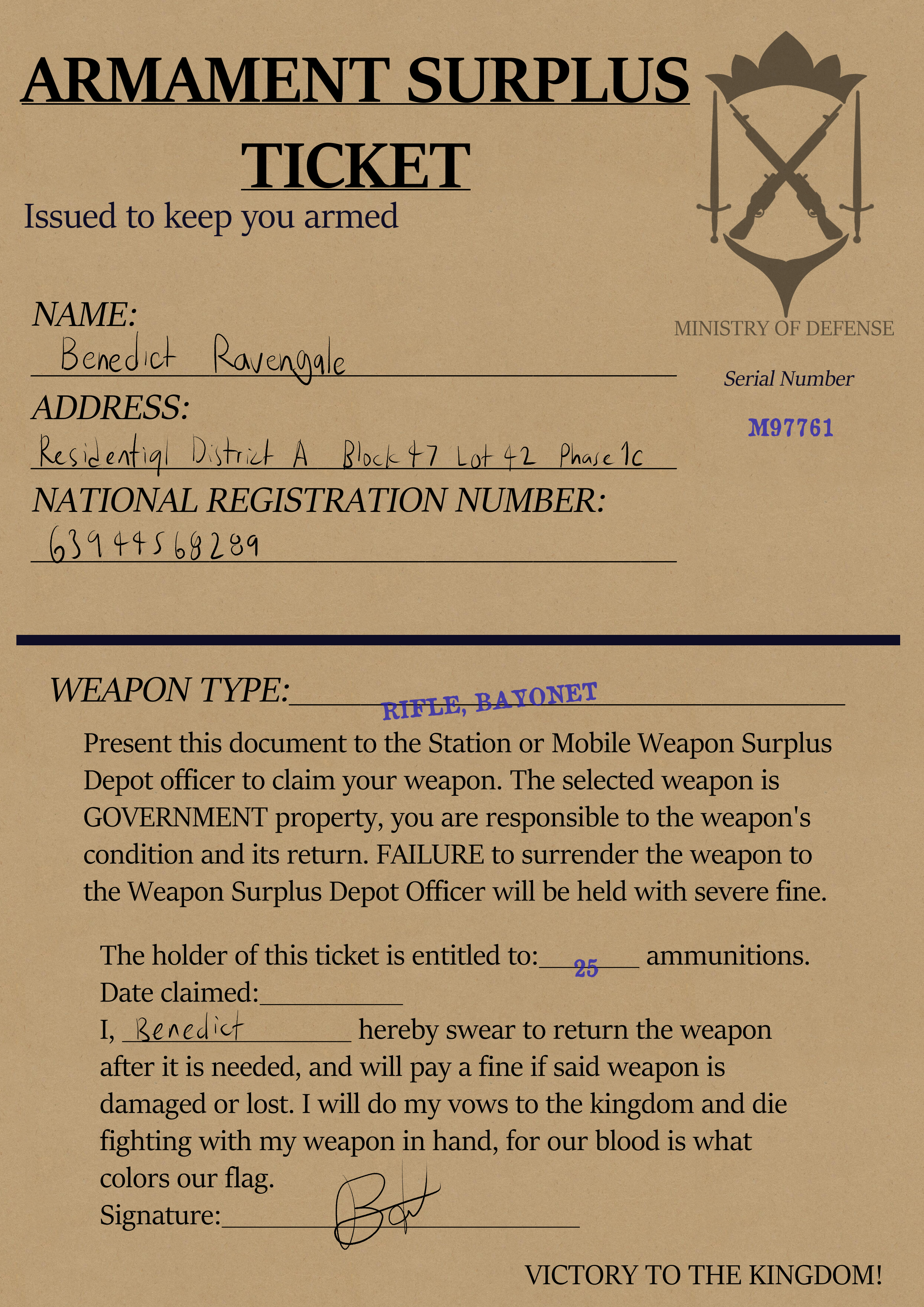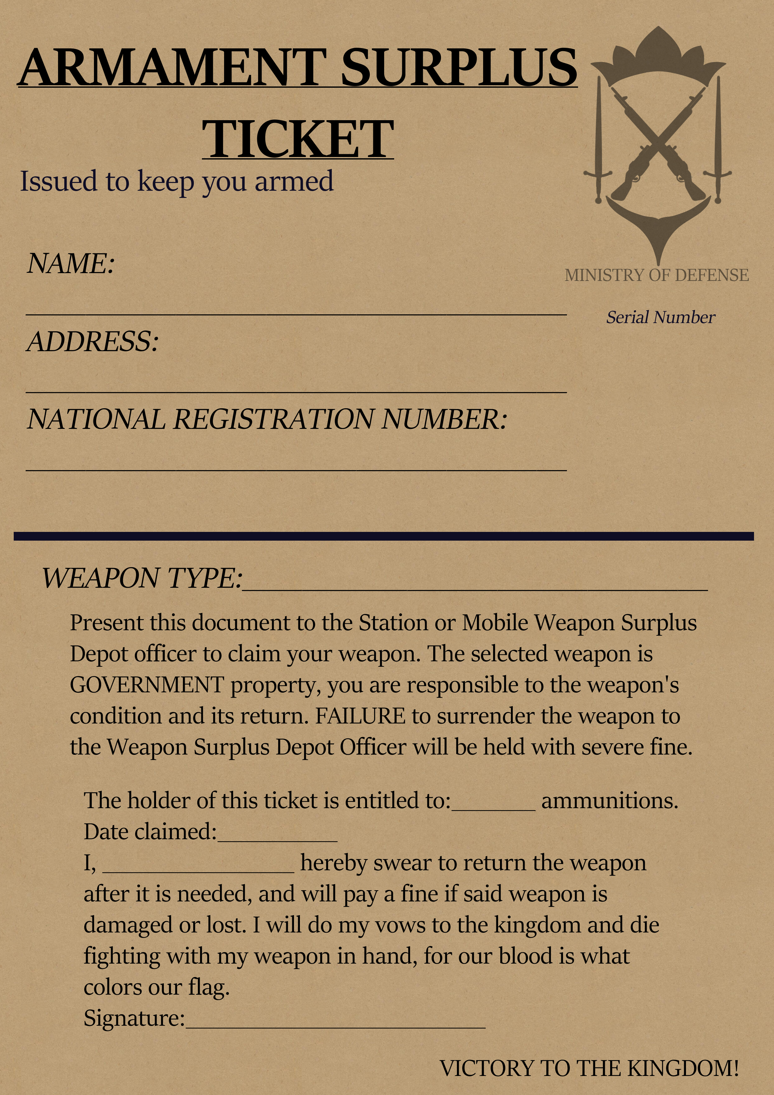 Armament Surplus Ticket document.png
