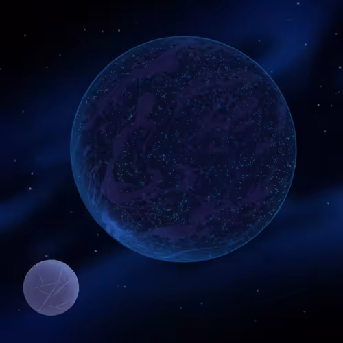 The primary orbital survey of Enlil found its mass to be about 4/3 that of Pherran's, with its radius being slightly larger than our homeworld. Gravity, while somewhat greater than Pherran's, was found to be within safe limits for our team's landing and long-term habitation. Its gravitational "blurriness" noticed by the original discovery data was not the result of any aberrance, but rather is the result of a satellite moon. This moon has not been named yet but is referred to as Enlil B amongst the team. Naming it has become the reward for the crew member who provides the most useful findings at conclusion of this study. Enlil B's mass is about 10% that of Enlil, making it a significant major moon. Orbital surveys found notable eccentricity of both bodies around their barycenter, which has effects on several key aspects of the Enlil-Enlil B system. The moon orbits in roughly 5.6 days and is tidally locked to Enlil, which itself rotates every sixteen and a third hours. The eccentricity of these bodies' orbits is notable, enough to make a visible difference in Enlil B's apparent size over the course of its orbit.