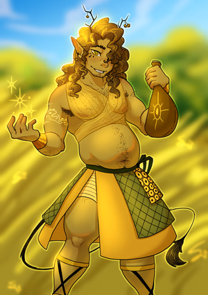 The Bofhianni are the Annhi Dhriaf of the summer, representing its constant strong heat and its relatively peaceful weather. From the same glades as the Fhriarhianni, they emerge in the summer to wander the wilderness and drink in the scenery. Their silken clothes are a recognizable combination of gold and green, made to vent away heat and keep them mobile.