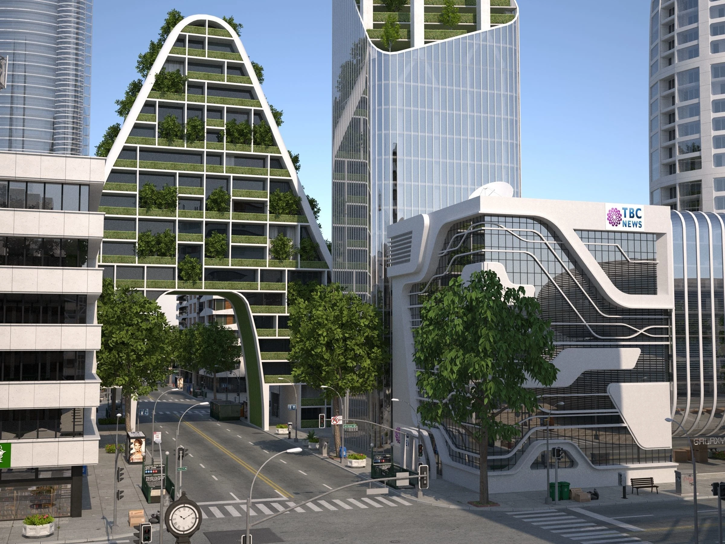 Another area of Nova City, most buildings here are required to have plants on them in order to keep the air clean and healthy.
