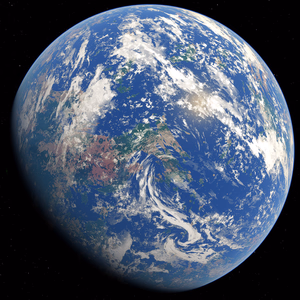 Kai Vari is the singular major moon of Kai Sära, made up nearly entirely of various silicates. At a distance of a little over twenty six thousand kilometers, the planet is a spectacular sight to behold, dominating the inky spacescape. Though it is largely uninhabited, several mining companies have set claim to various regions of the planet, many of whom are directly fueling the urban construction efforts on Kai Sära.
