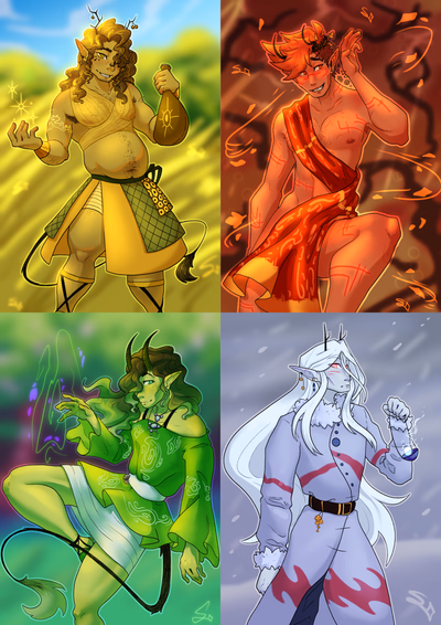 The Annhi Dhriaf are among the oldest Idyllfolk races in the world. Their origin dates back to four of five alleged groups of humans vying for power after the First Fall of the Valley of the Gods. While it is unknown how or why each group decided collectively to attune themselves to a respective season, they were eventually successful in attaining great power by the 57,000s AT. Since then, they rapidly spread across the world through their esoteric travel means, spiriting away to the temperate and continental climates that see consistent seasonal variation.