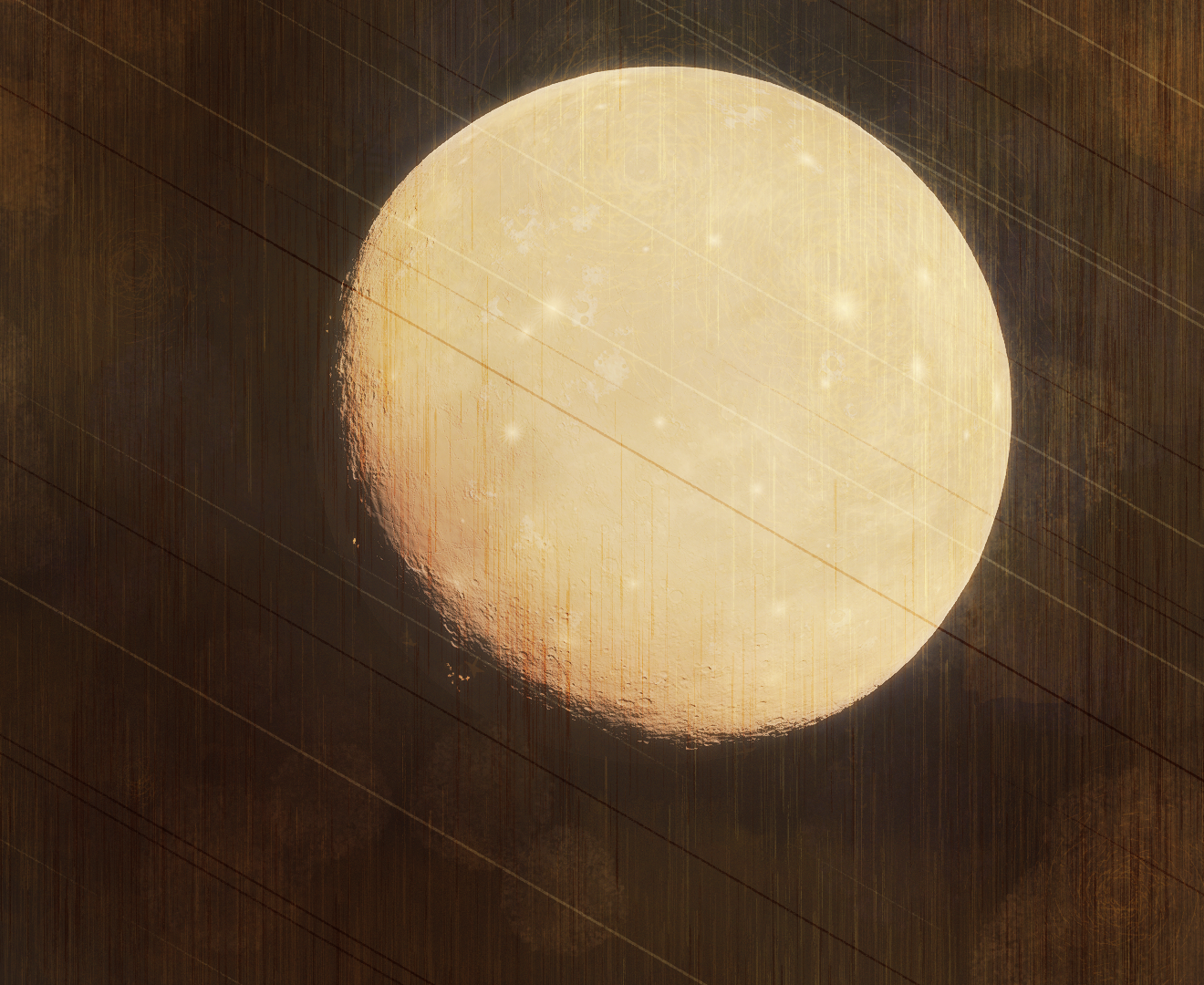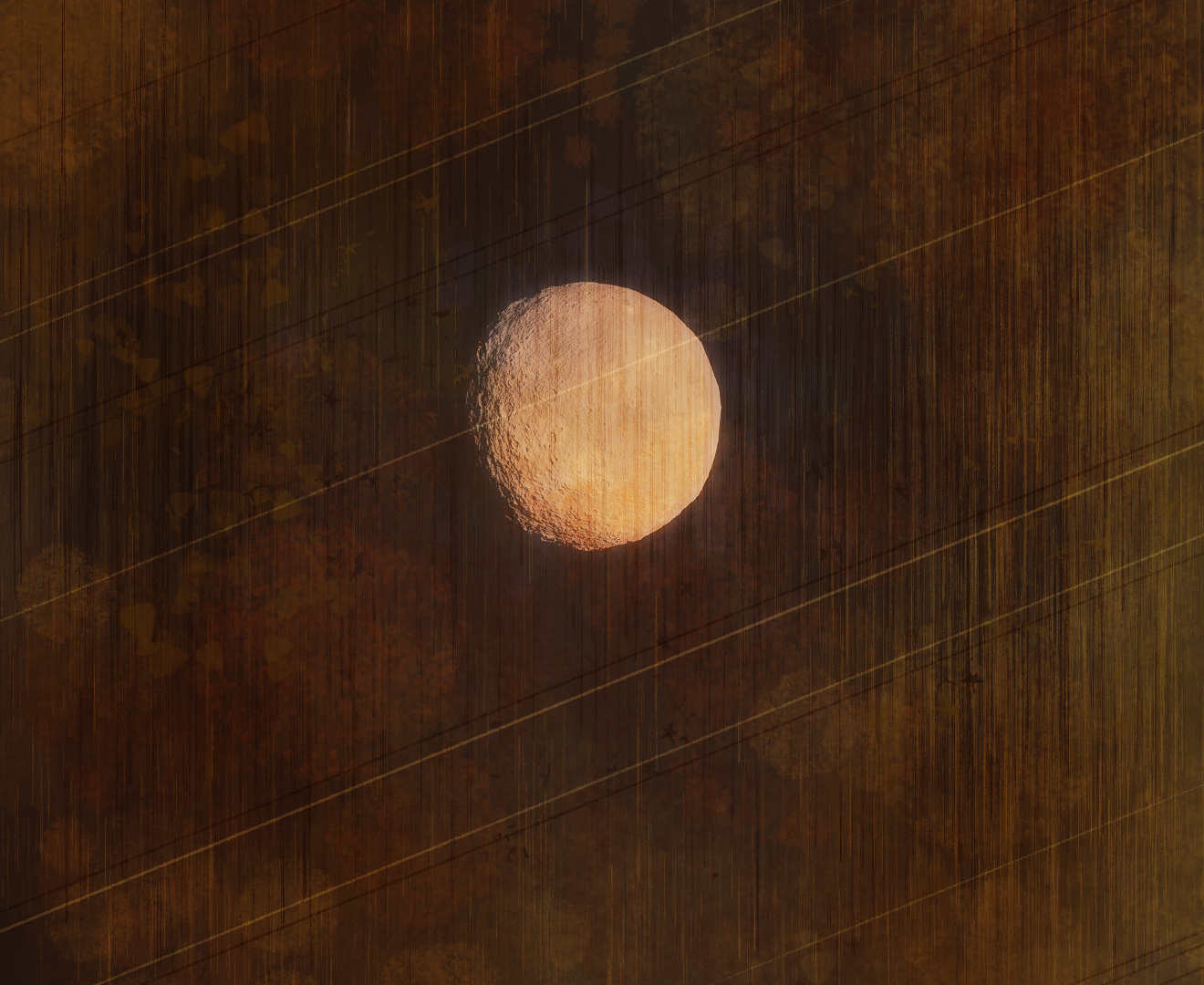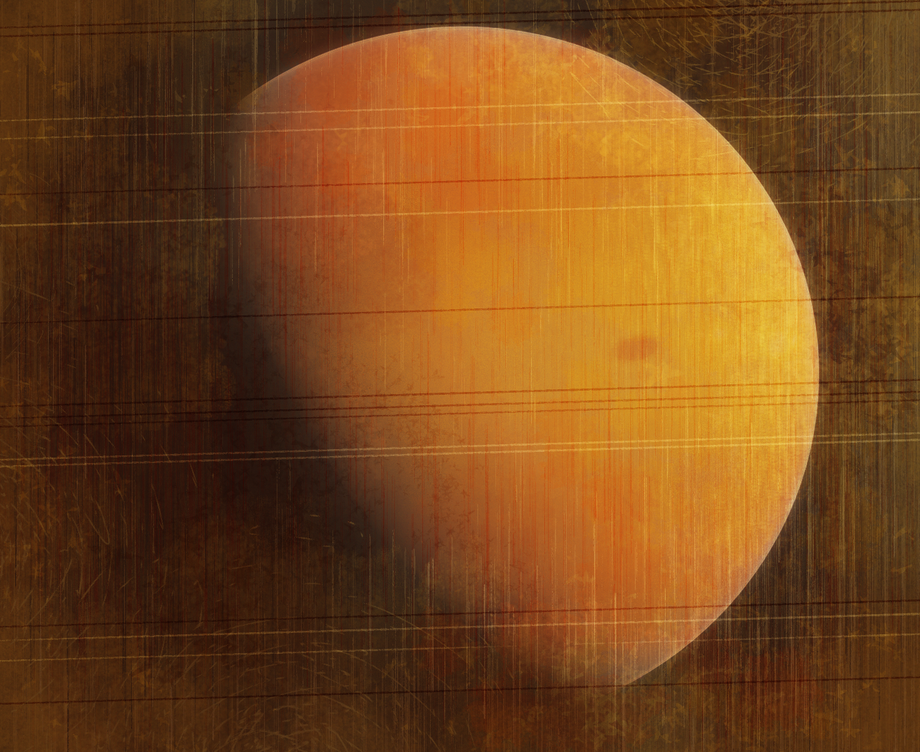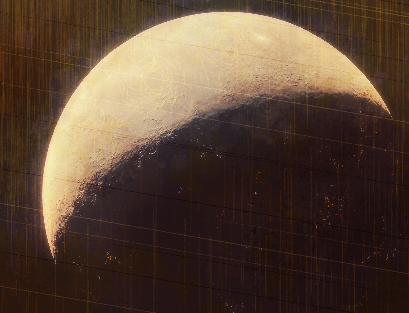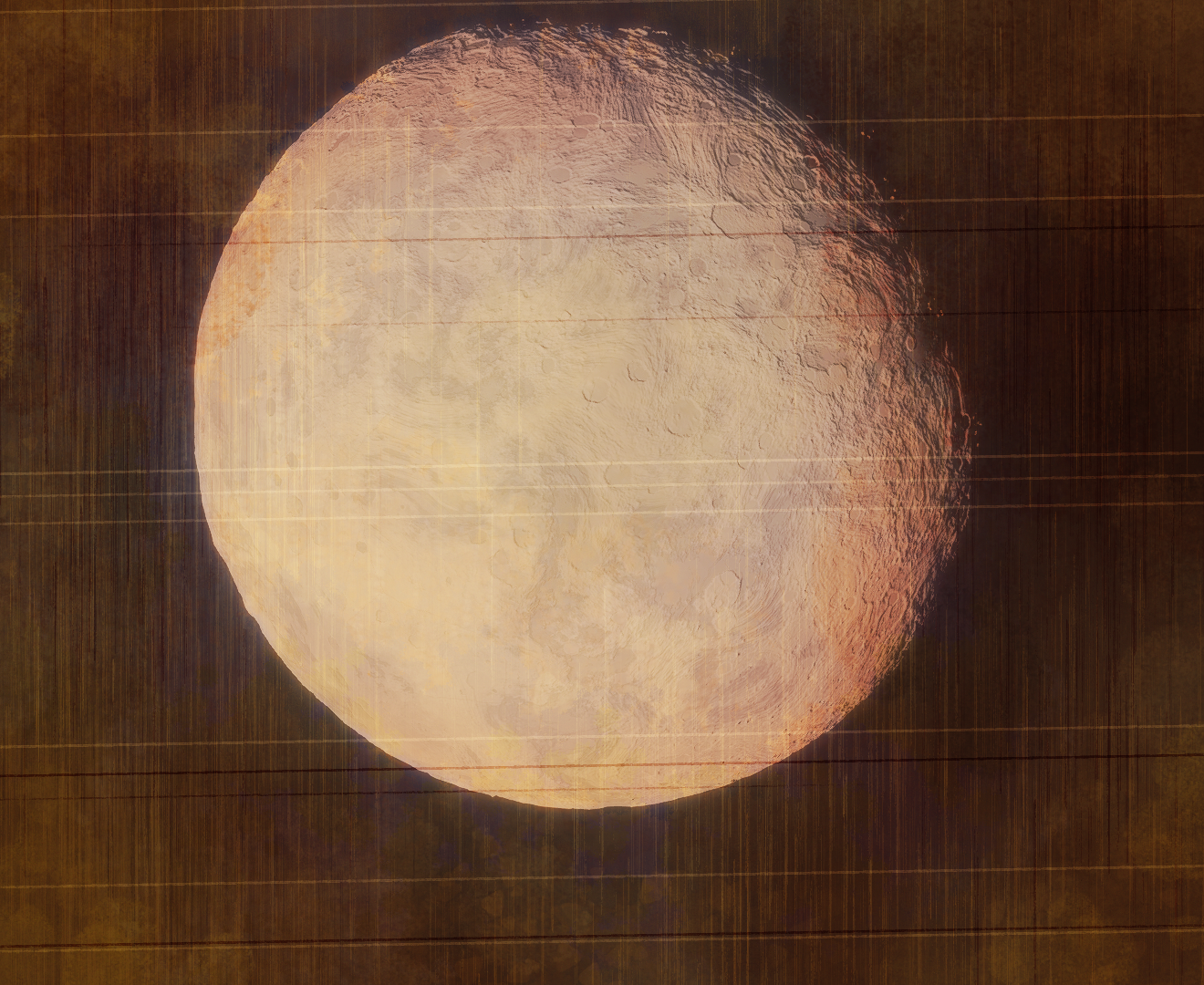 The moon's surface is covered in sulfur compounds, brought up from the mantle through its unyielding volcanism and spilled out onto the surface. What clouds do form from these eruptions are quickly stripped away through solar wind and magnetic interaction, leaving the world airless and covered in streaks of reds and yellows. Basaltic igneous flows are also common, giving the moon the iconic dark spotting it is known for. These blood-red streaks and blackened basalt deposits are the distinguishing features that gave Blóðughadda its name, the first of the moons to be given one.