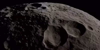 An aerial photo of Vesta's surface