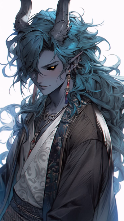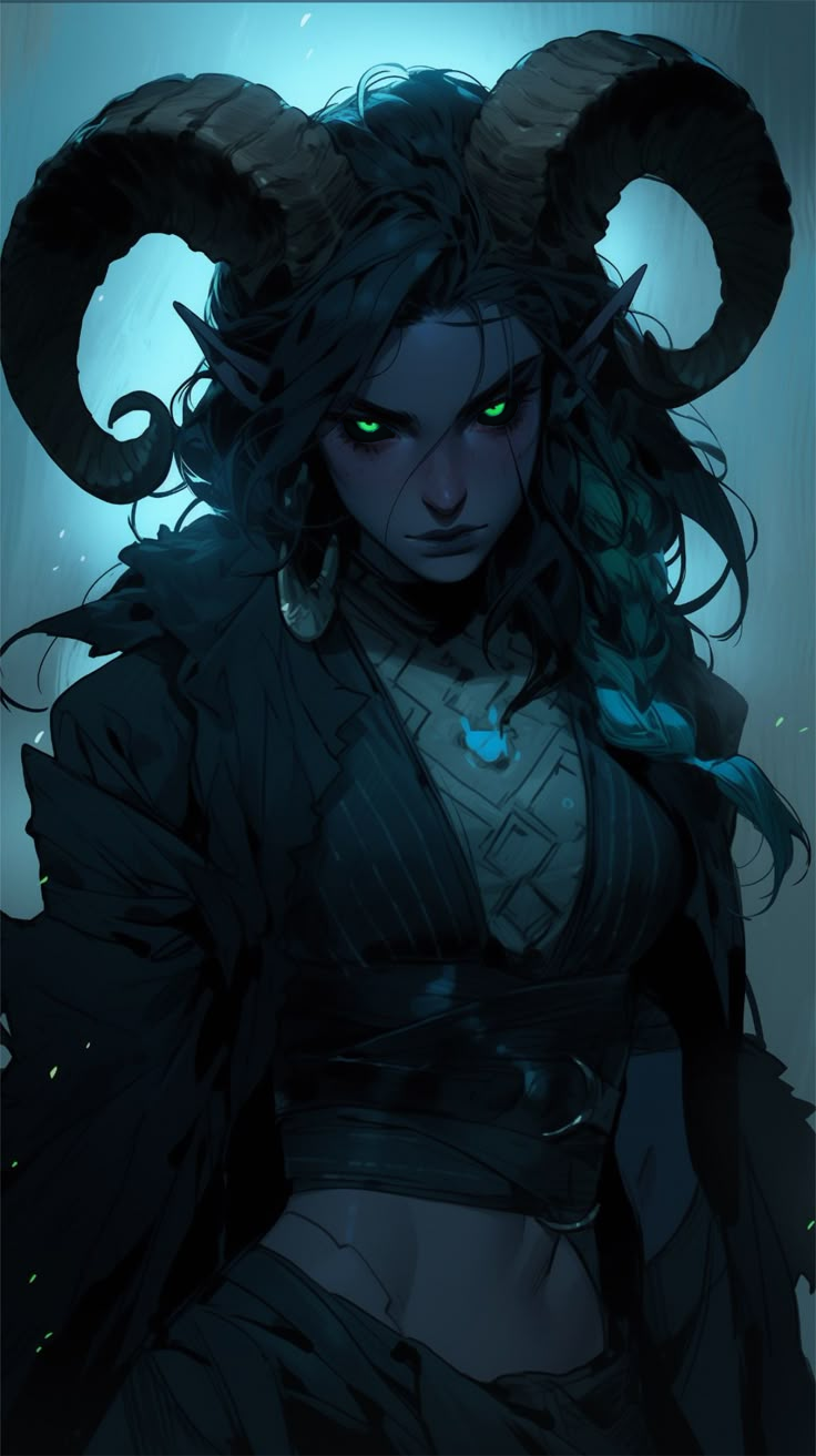 The Xauri are, on a basic level, very similar to the Elvendritch, sharing their pointed ears, and black sclera. At some point in their history, the Xauri evolved horns, made out of bone, which would grow out of their skulls. Xauri bones can be a variety of colours - From dark blue, to black, to dull red. Roughly two-thirds of Xauri have horns - One third do not. To not have horns is considered intimidating within Xauri culture.