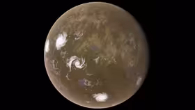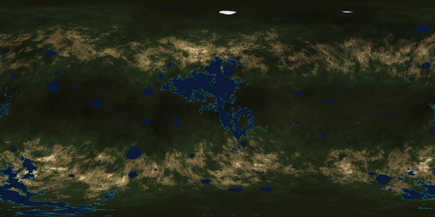 With an axial tilt of 144° and 25’ the seasons on the planet are very rough and colder than those on Earth as the planet has a normal mean temperature of -13.3 °C. The planet has an atmosphere of 0.1 ATM.