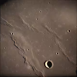 Sinuous rilles found across the basaltic surface of the moon were generally extinct lava channels or collapsed lava tubes. They typically originated from volcanic vents, meandering for dozens of kilometers and sometimes branching. They sometimes featured sharp turns and bends that are uncommon on habitable worlds like Teralla. |