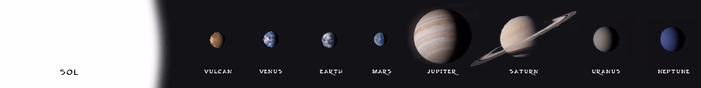 The Sol System has eight major planets, Vulcan, Venus, Earth, Mars, Jupiter, Saturn, Uranus, and Neptune, with various dwarf worlds as well as a multitude of comets and asteroids.
